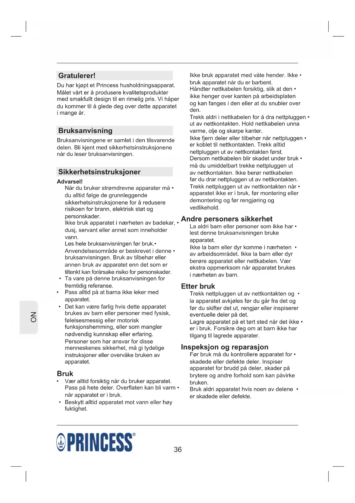 BRUKSANVISNING 142601 PRINCESS