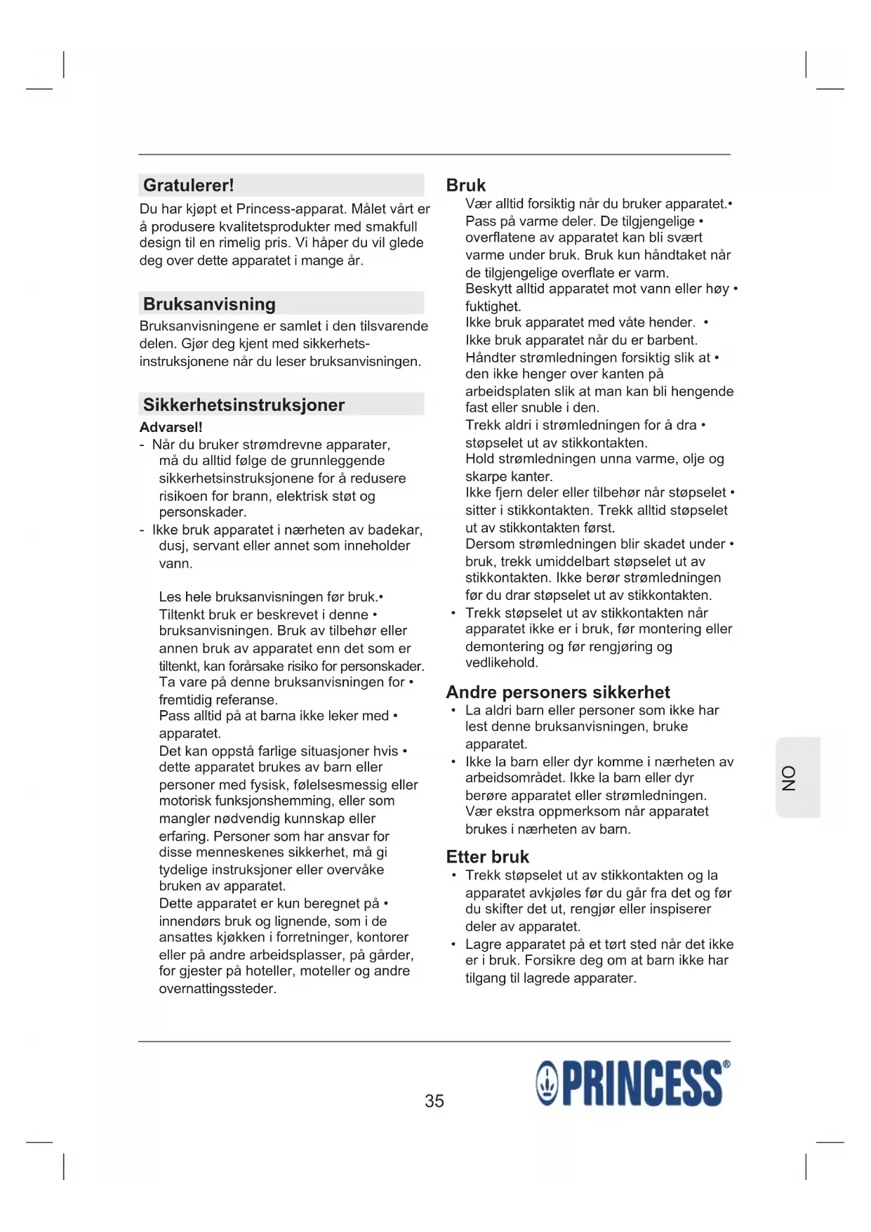 Finn enhetens veiledning gratis 232613 PRINCESS i PDF-format.