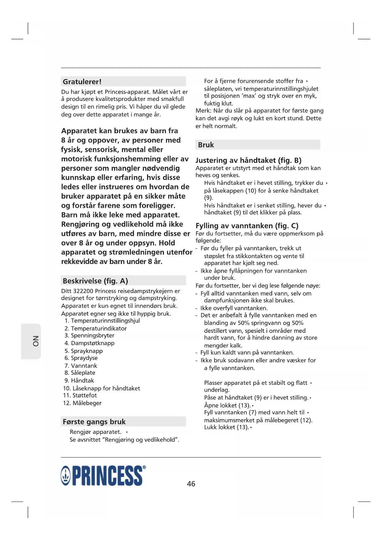 BRUKSANVISNING 322200 PRINCESS