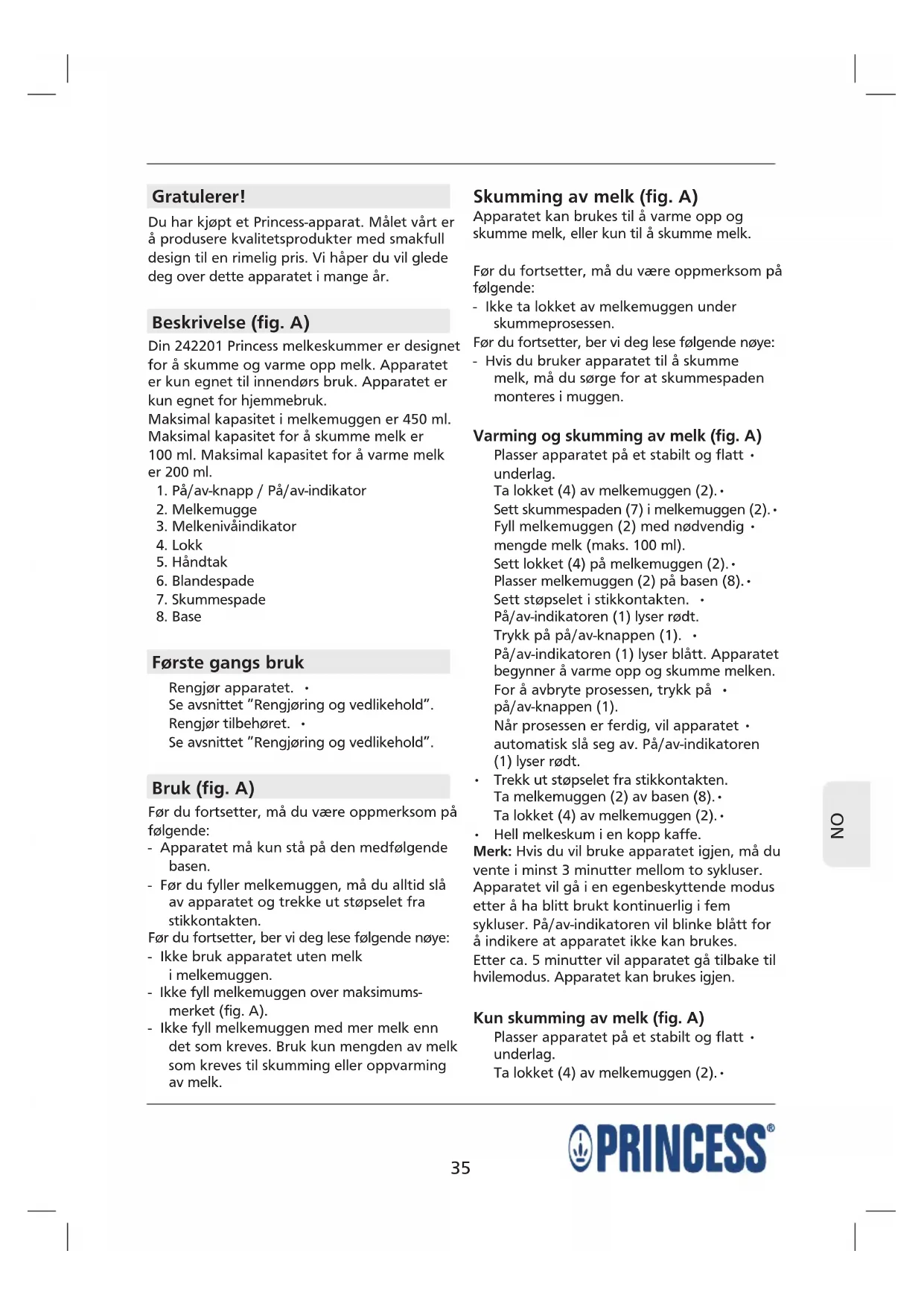 BRUKSANVISNING 242201 PRINCESS