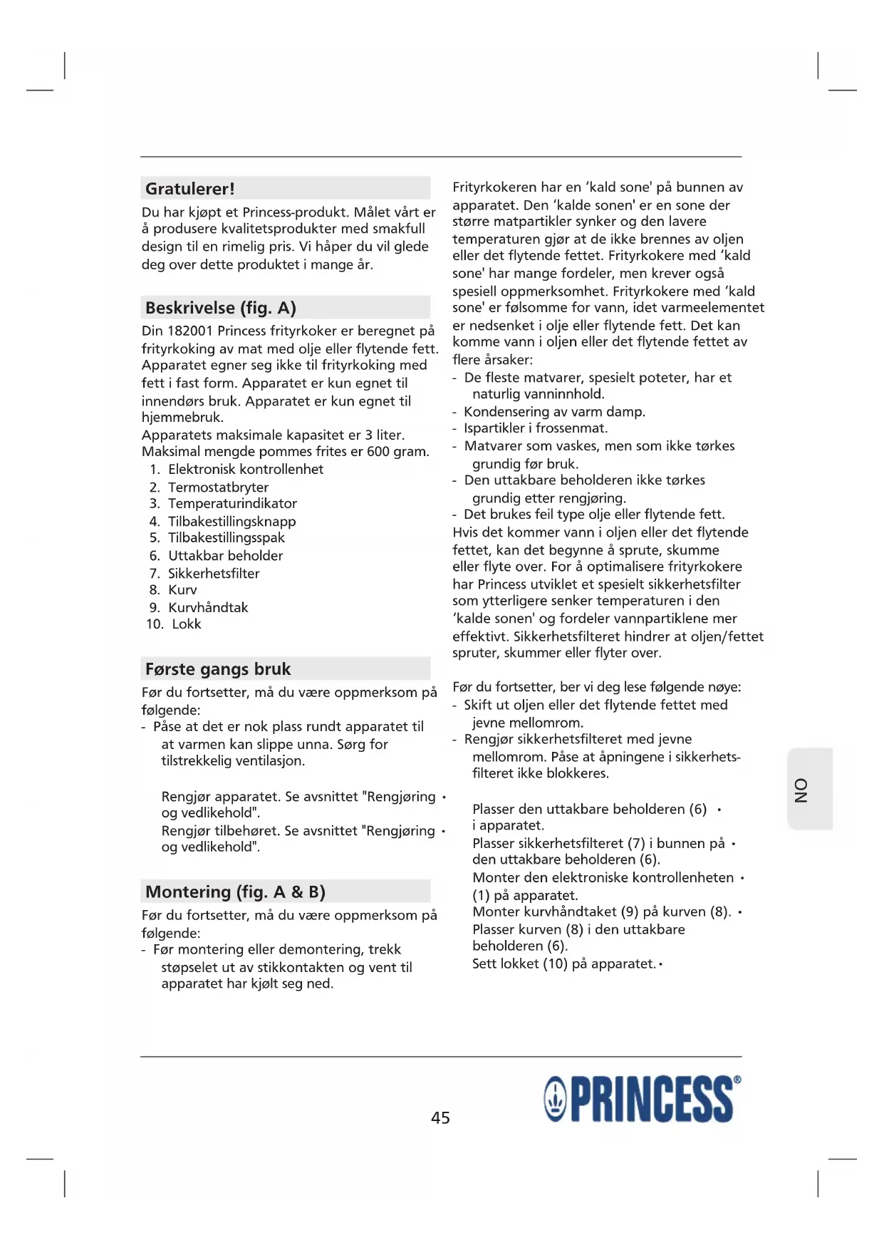 Finn enhetens veiledning gratis Superior Fryer PRINCESS i PDF-format.