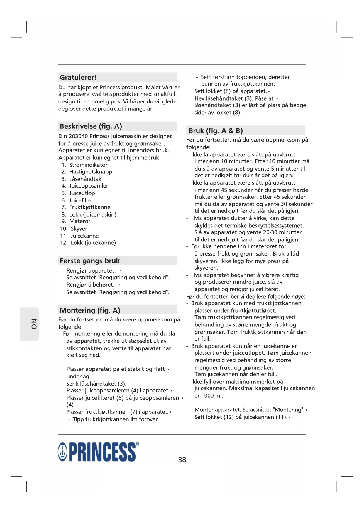 Finn enhetens veiledning gratis Juice Extractor 203040 PRINCESS i PDF-format.