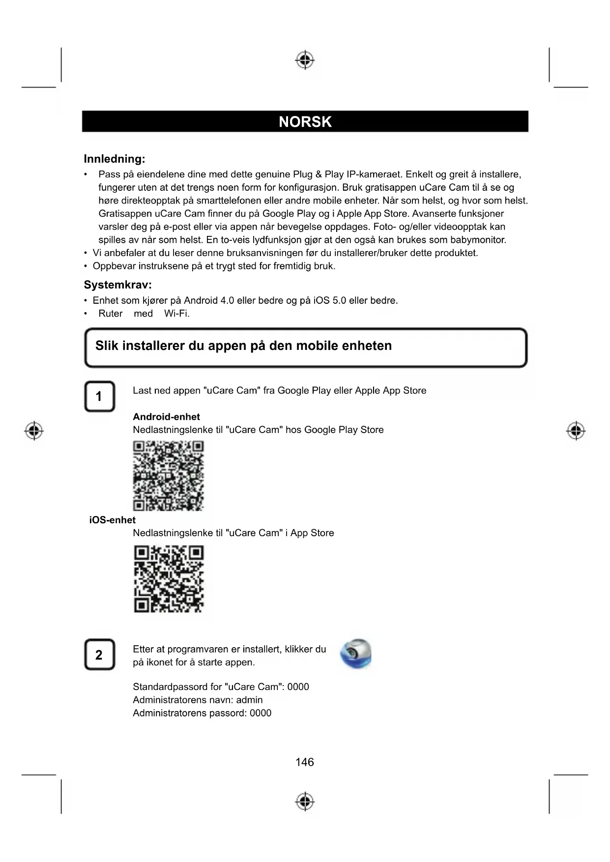 Download appen "uCare Cam" fra Google Play eller fra Apple app store
