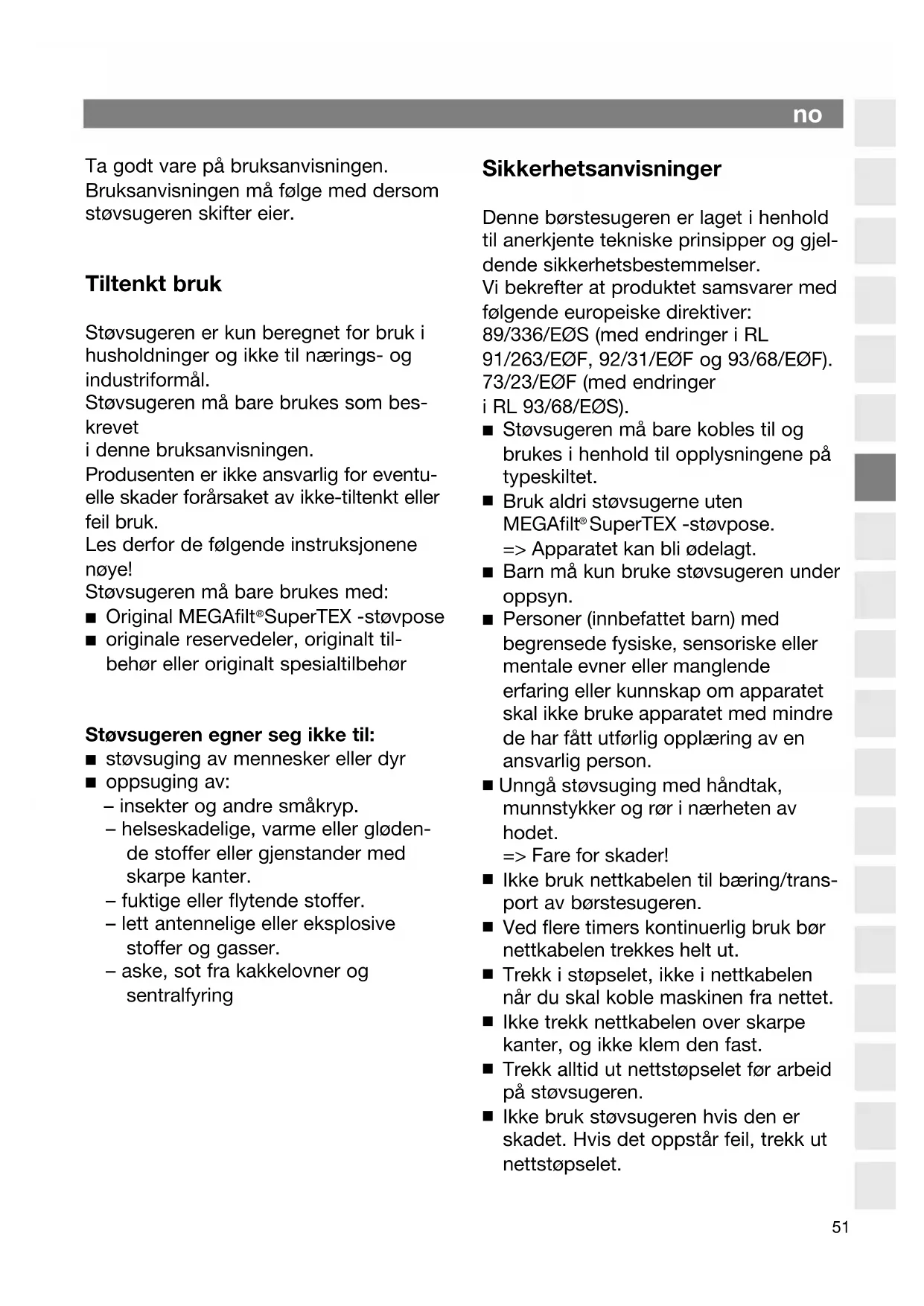 Støvsugeren må bare brukes som bes-