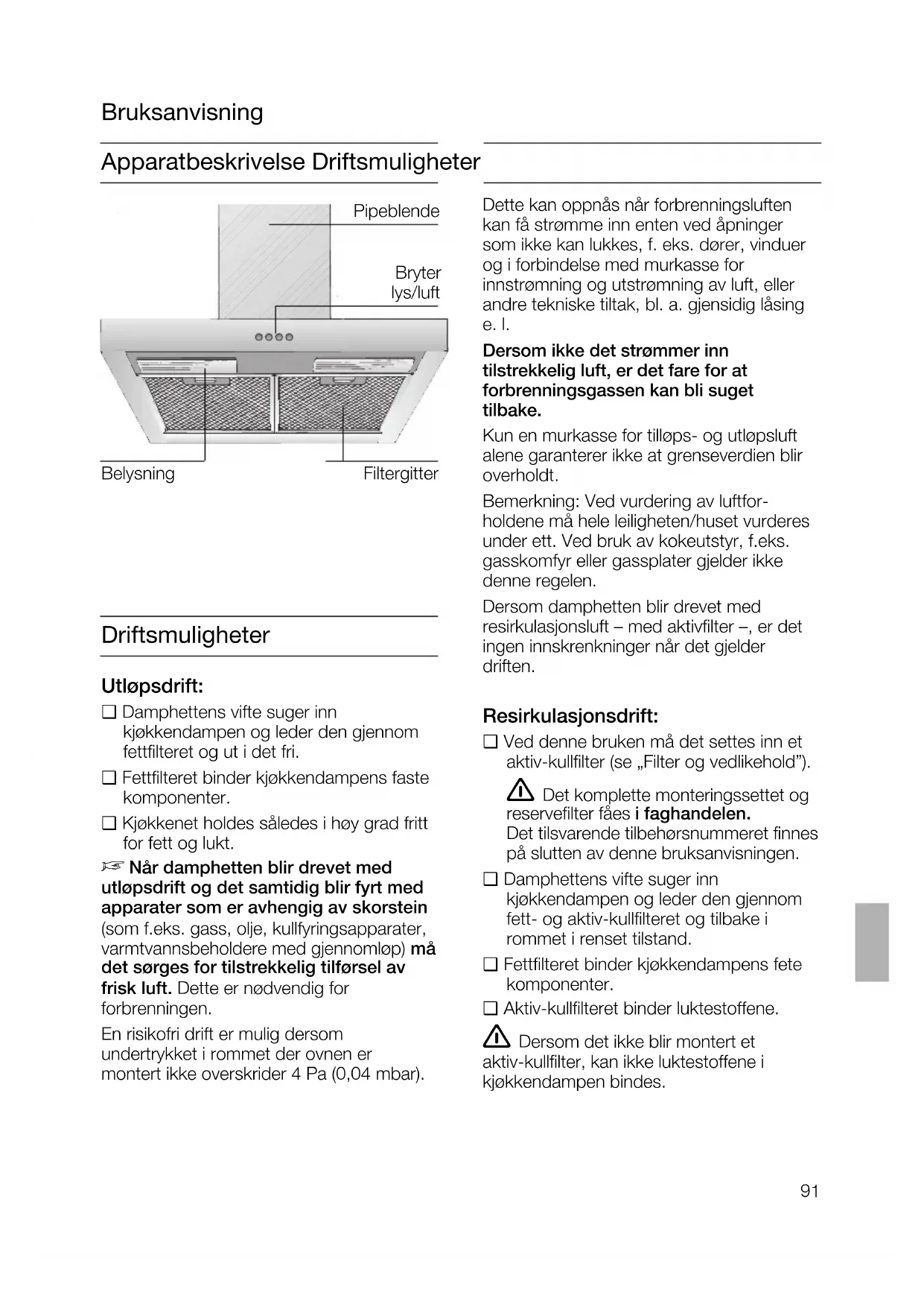 aktiv-kullfilter (se „Filter og vedlikehold”).
