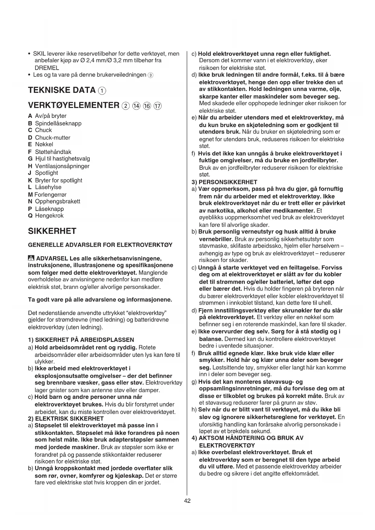 • SKIL leverer ikke reservetilbehør for dette verktøyet, men