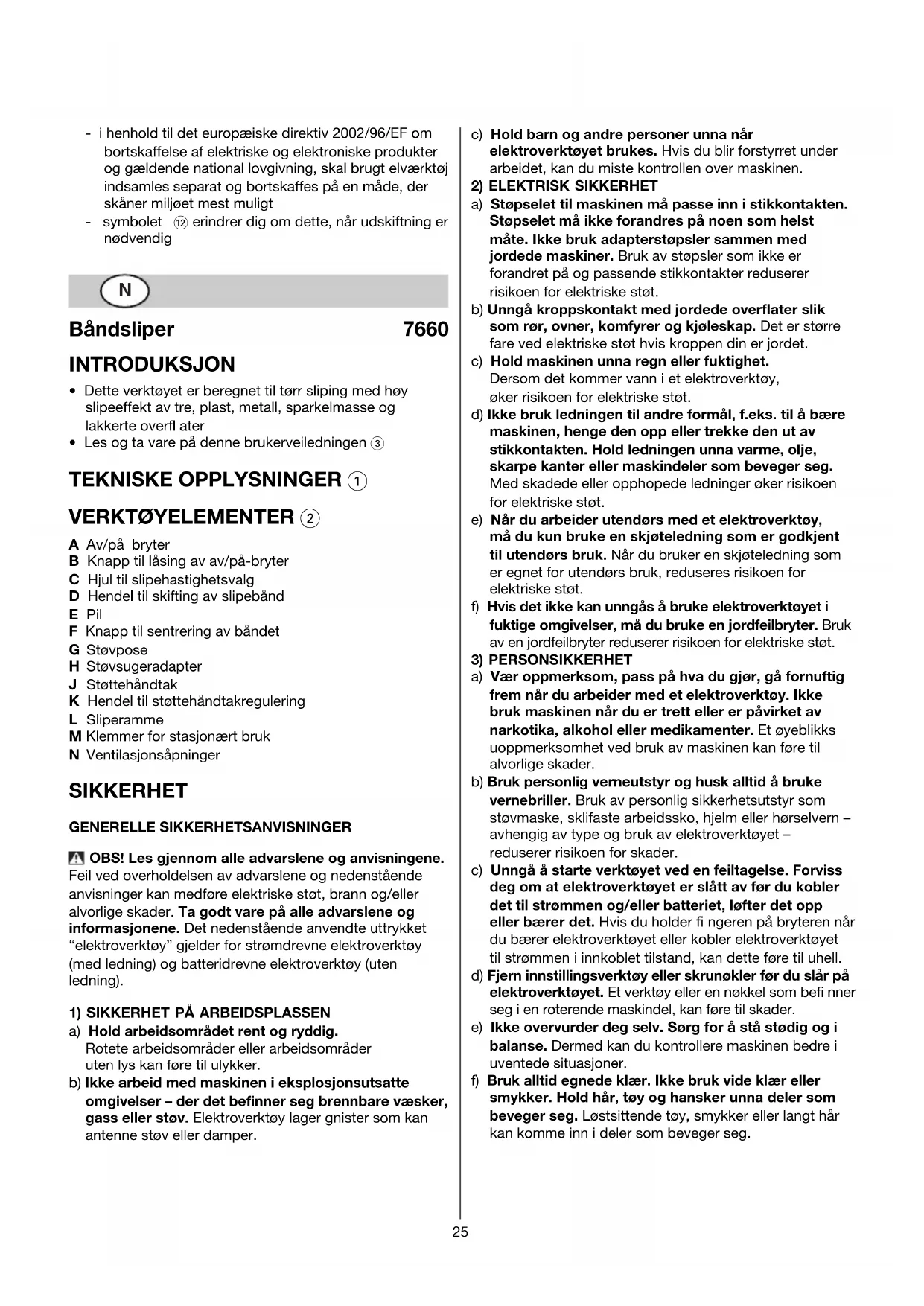 SIKKERHET GENERELLE SIKKERHETSANVISNINGER OBS! Les gjennom alle advarslene og anvisningene.
