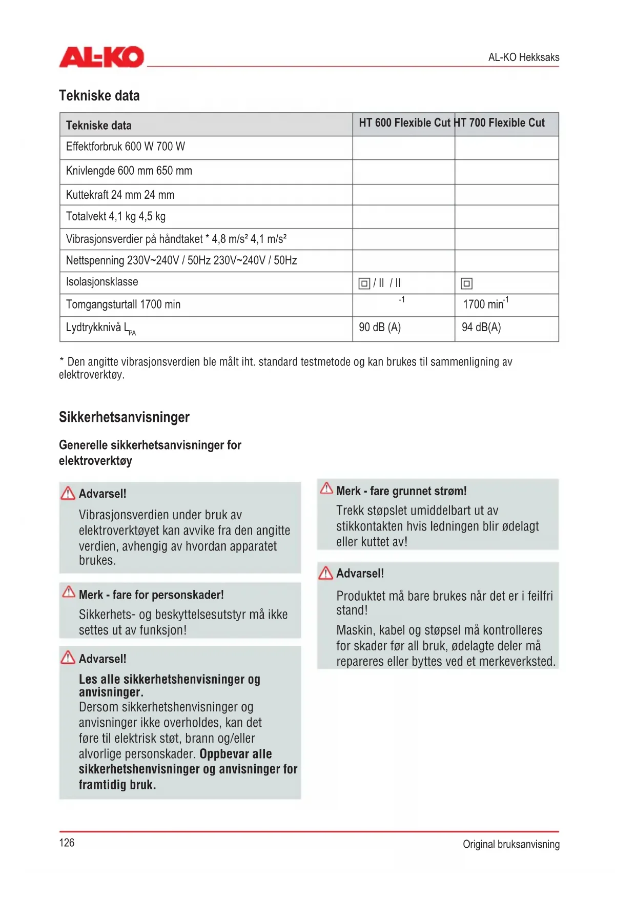 Téléchargez la notice de votre Hekksakser au format PDF gratuitement ! Retrouvez votre notice HT 700 - AL-KO et reprennez votre appareil électronique en main. Sur cette page sont publiés tous les documents nécessaires à l'utilisation de votre appareil HT 700 de la marque AL-KO.