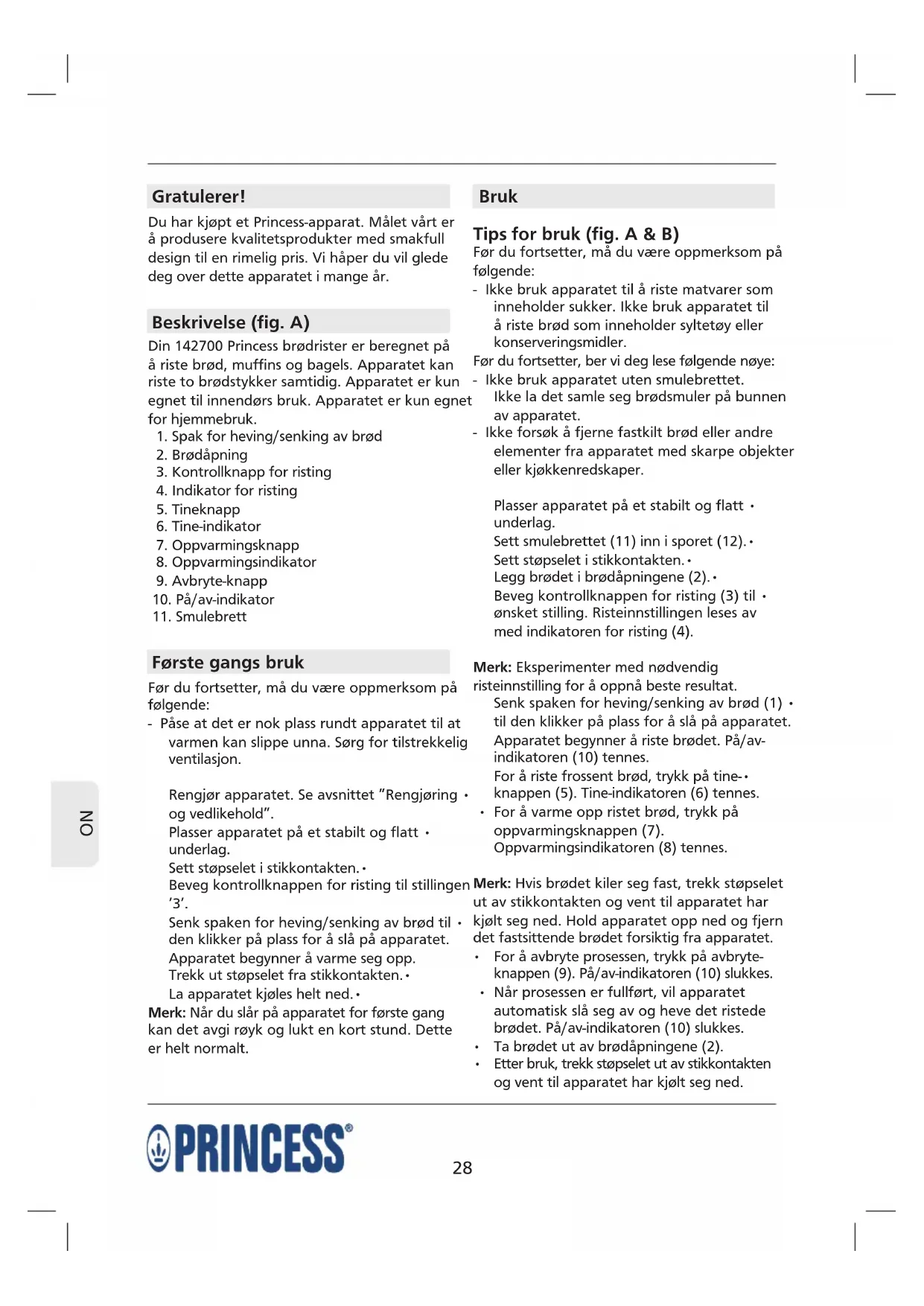 BRUKSANVISNING 142700 PRINCESS