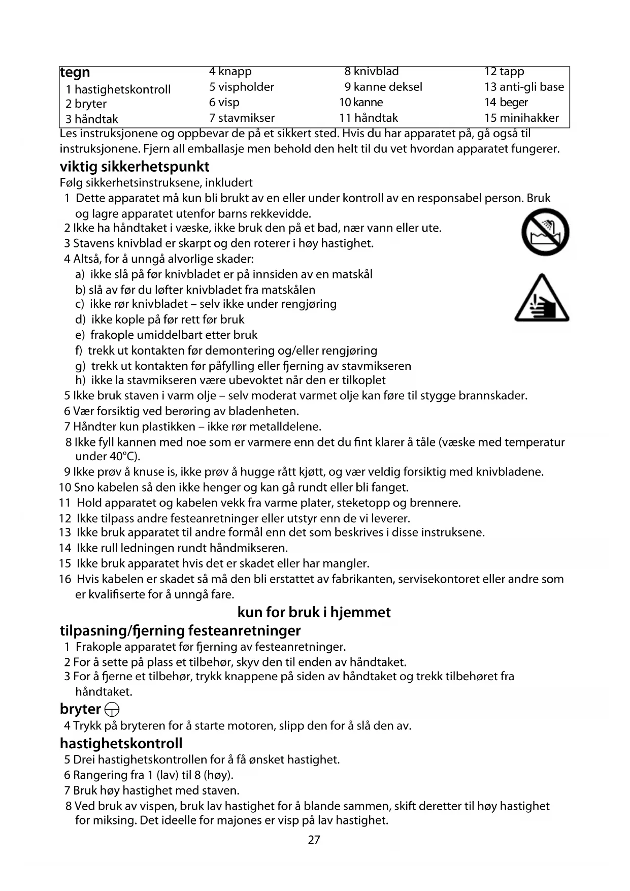 h) ikke la stavmikseren være ubevoktet når den er tilkoplet