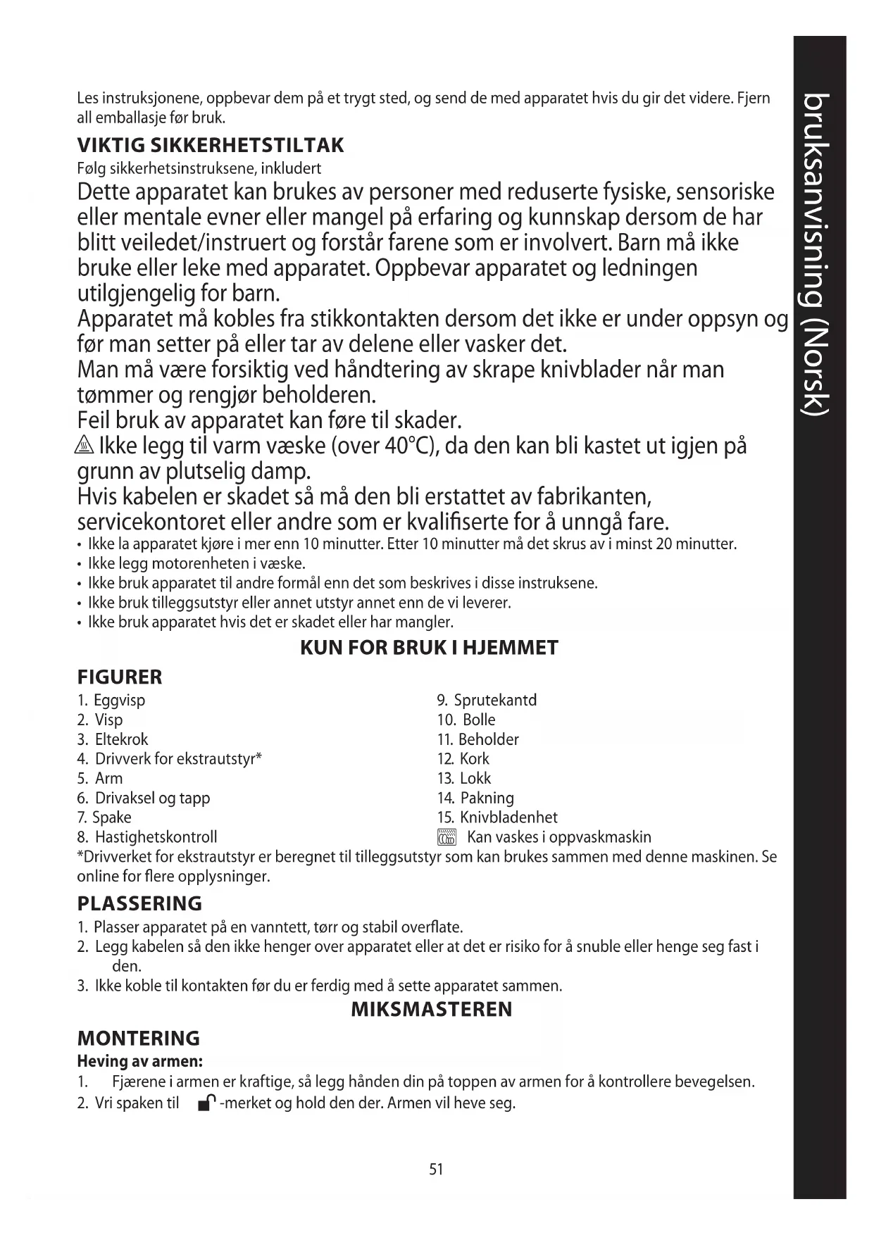 Les instruksjonene, oppbevar dem på et trygt sted, og send de med apparatet hvis du gir det videre. Fjern