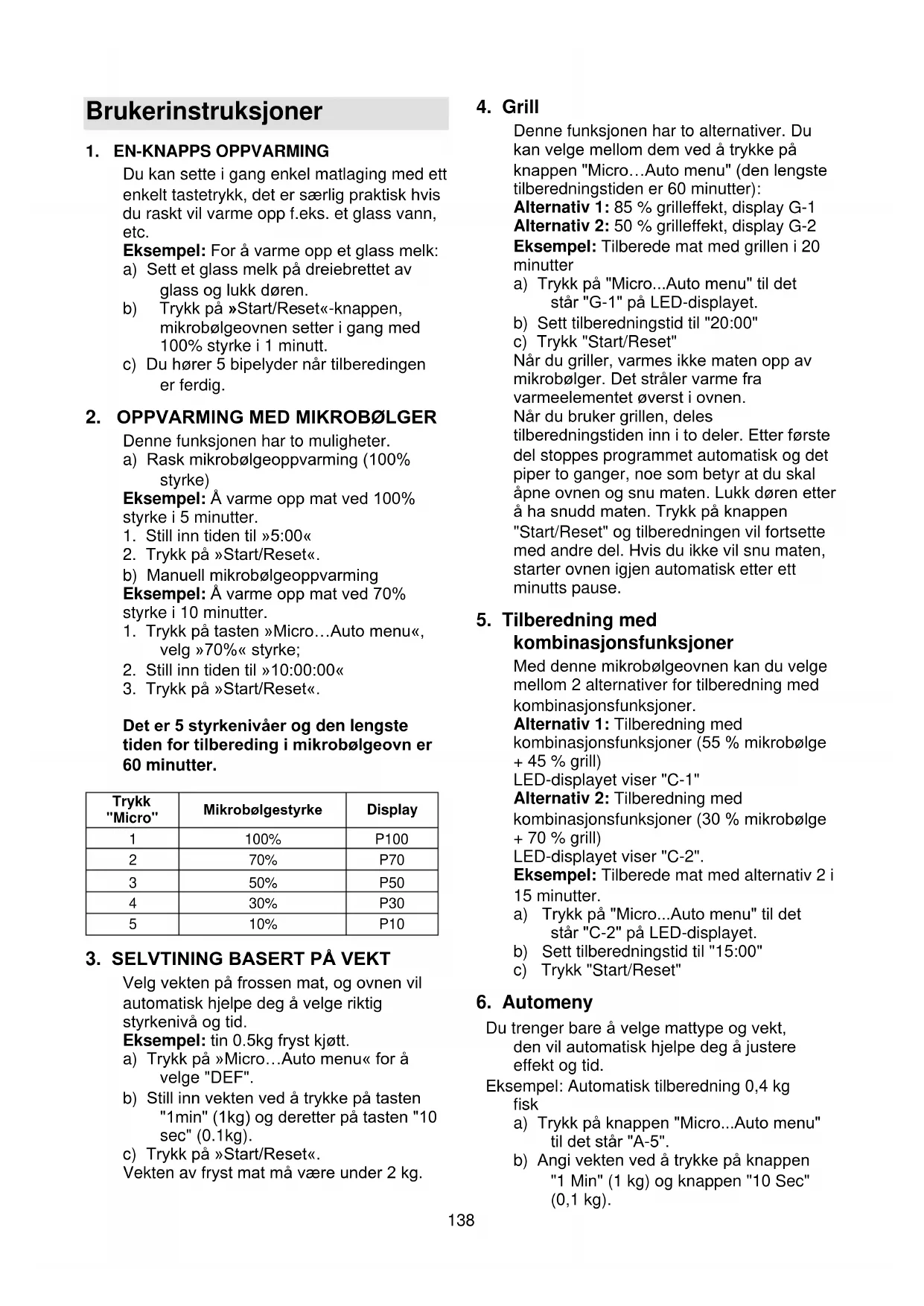 kombinasjonsfunksjoner (30 % mikrobølge