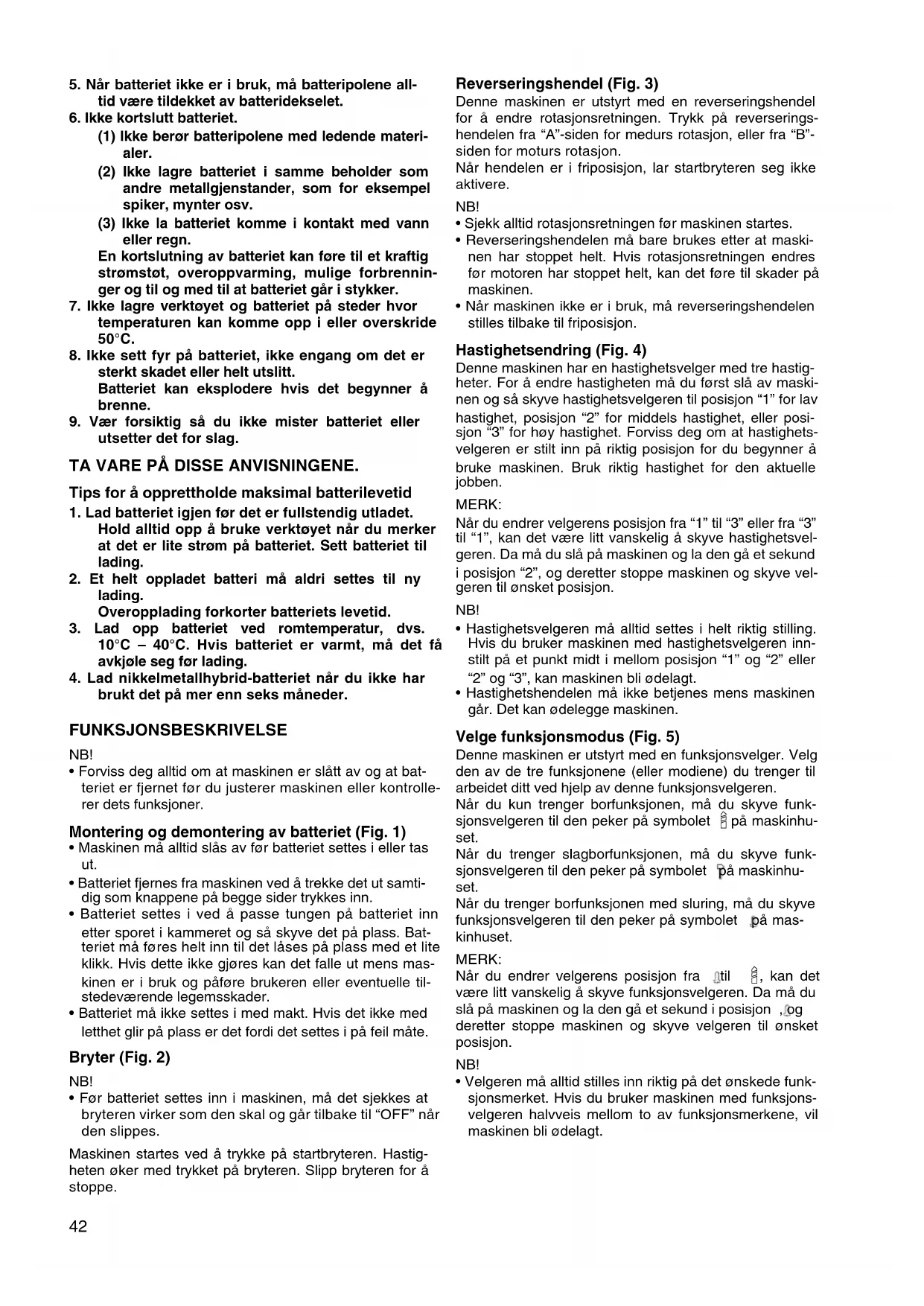 • Forviss deg alltid om at maskinen er slått av og at bat-