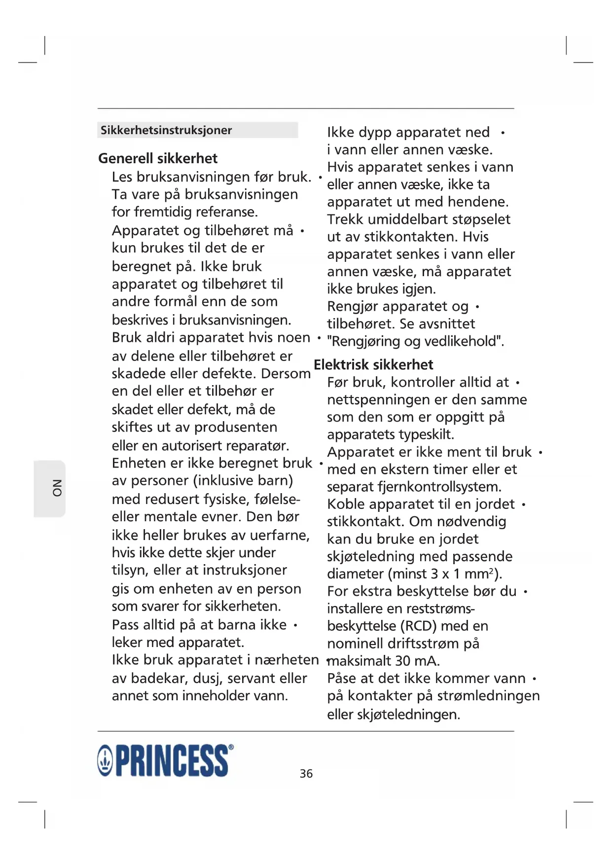NO Sikkerhetsinstruksjoner