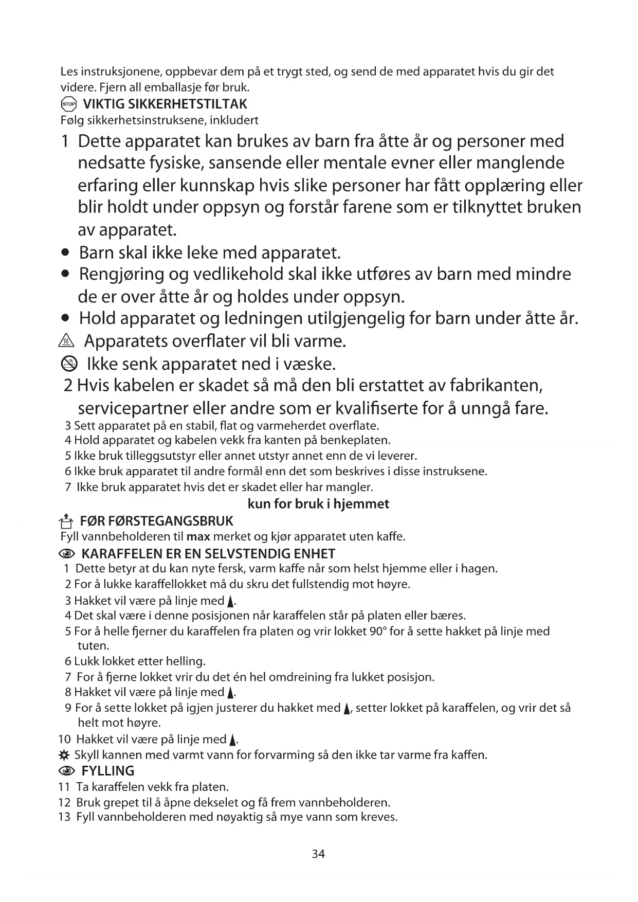 A VIKTIG SIKKERHETSTILTAK Følg sikkerhetsinstruksene, inkludert