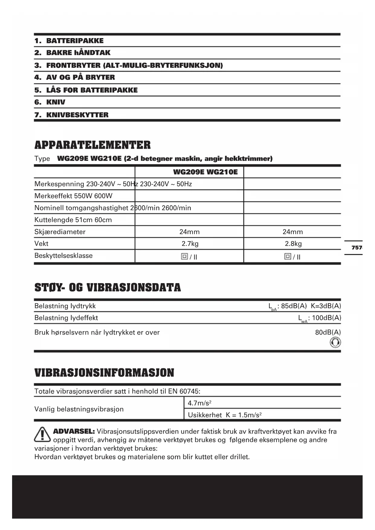 ADVARSEL: Vibrasjonsutslippsverdien under faktisk bruk av kraftverktøyet kan avvike fra