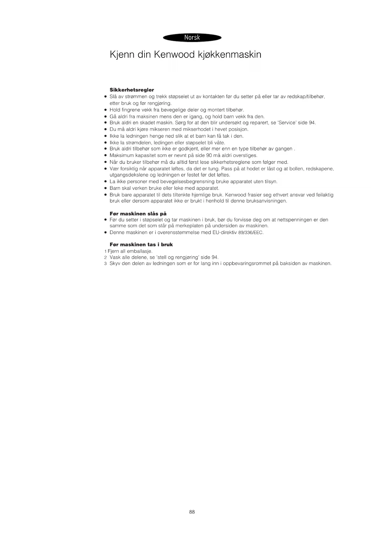 Bruk bare apparatet til dets tiltenkte hjemlige bruk. Kenwood frasier seg ethvert ansvar ved feilaktig