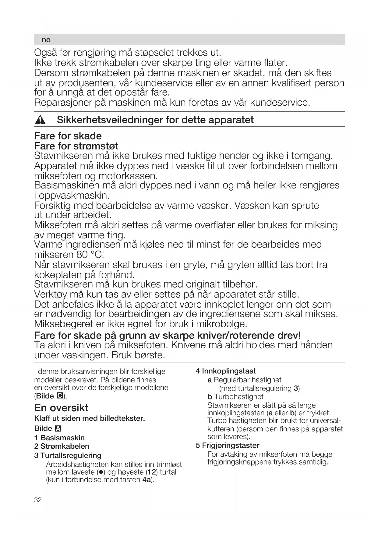 Apparatet er kun egnet for kutting hhv. blanding av matvarer.