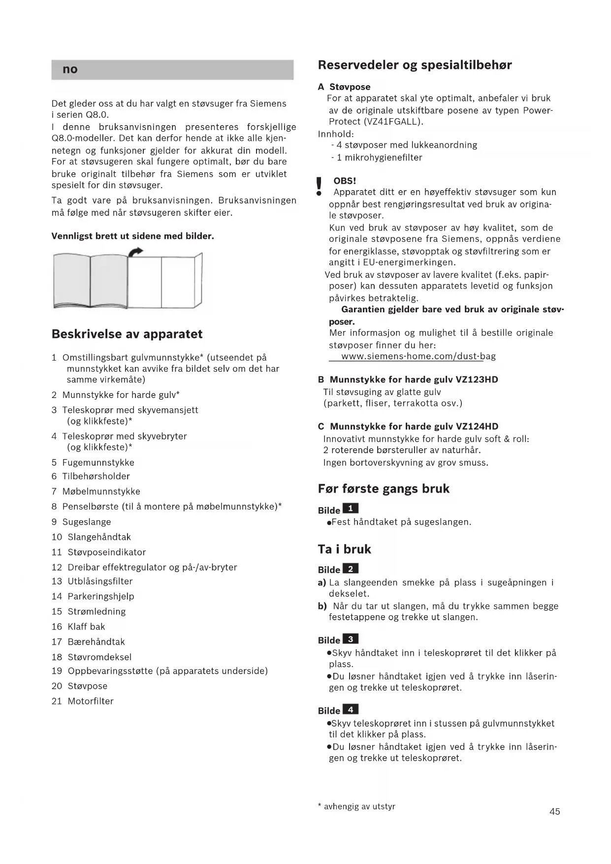 VSQ8SENM2 - Støvsuger SIEMENS - Notice d'utilisation et mode d'emploi gratuit