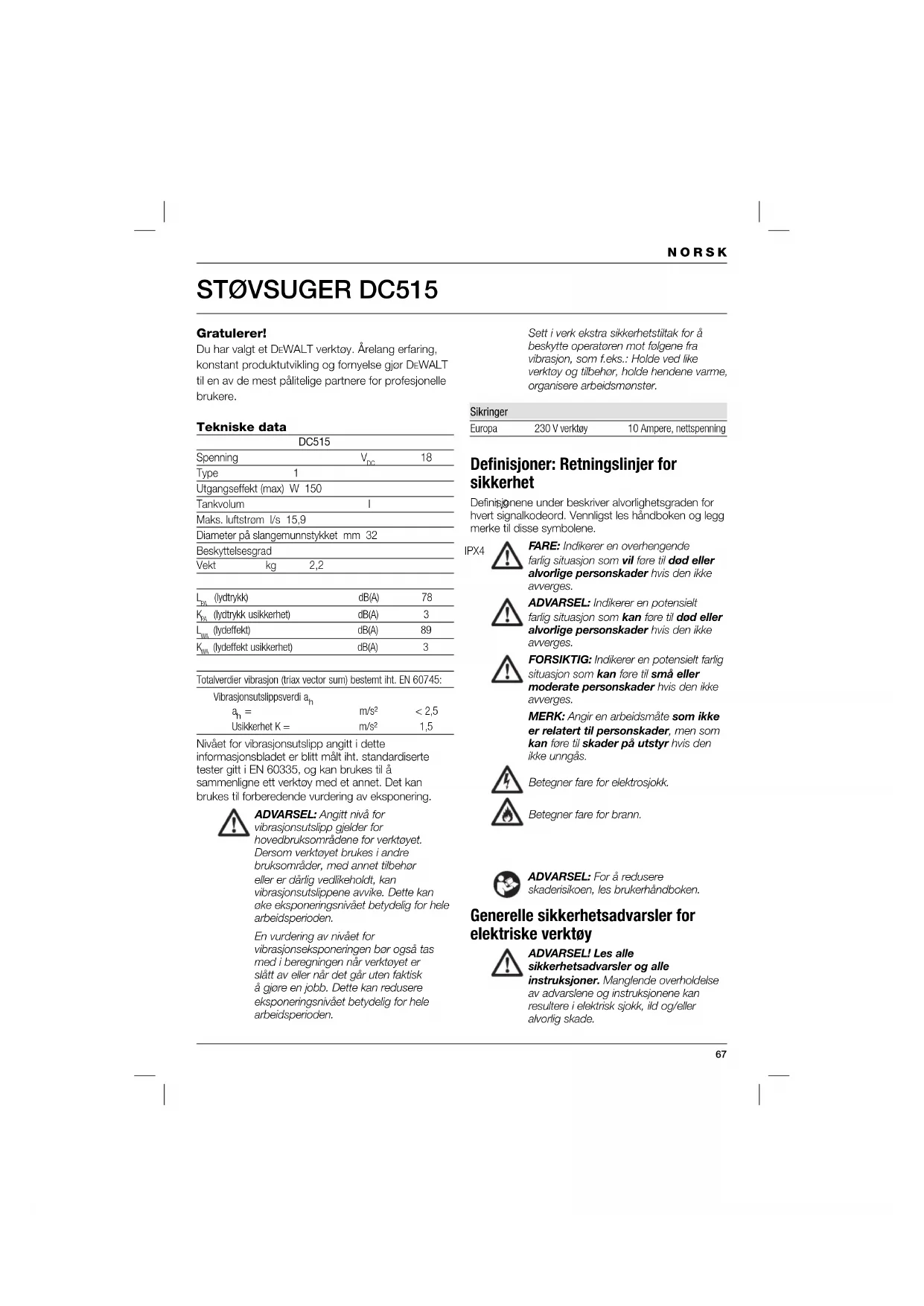 DC515 - Støvsuger DEWALT - Gratis bruksanvisning og manual