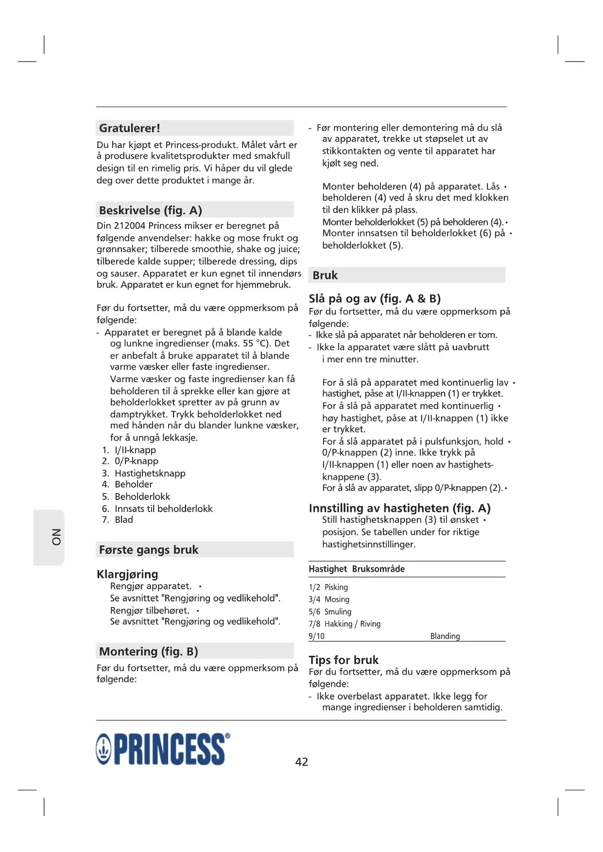 BRUKSANVISNING Royal Blender Turbo 10speed PRINCESS