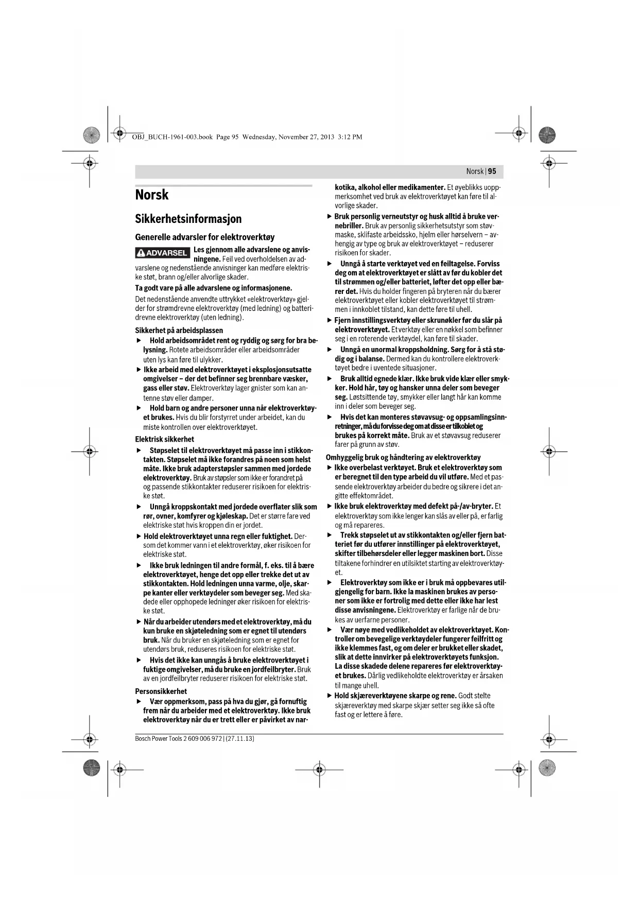 OBJ_BUCH-1961-003.book Page 94 Wednesday, November 27, 2013 3:12 PMNorsk | 95 Bosch Power Tools 2 609 006 972 | (27.11.13) Norsk