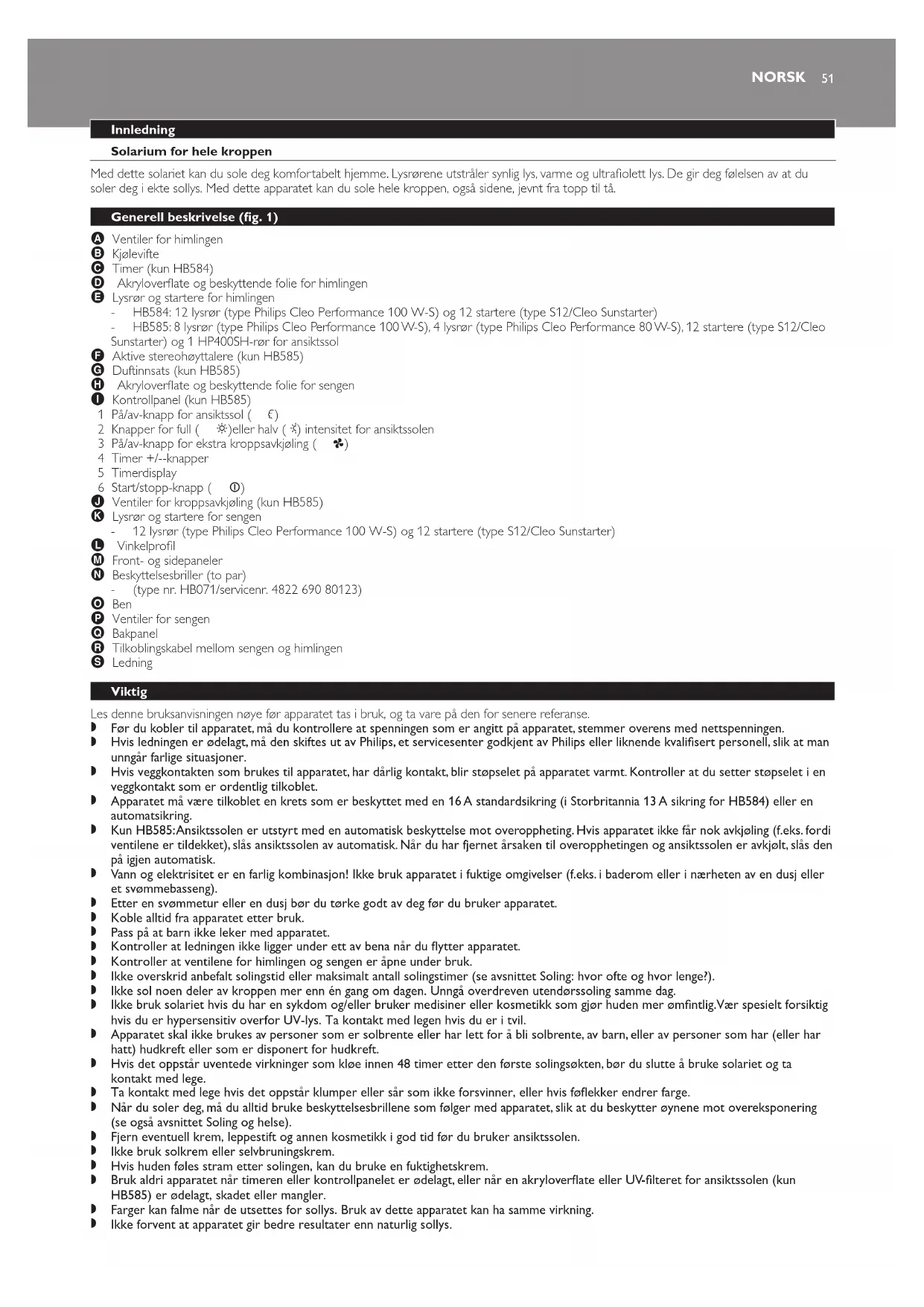 Rørene i ansiktssolen (kun HB585) kan bare skiftes ut av et servicesenter som er godkjent av Philips.