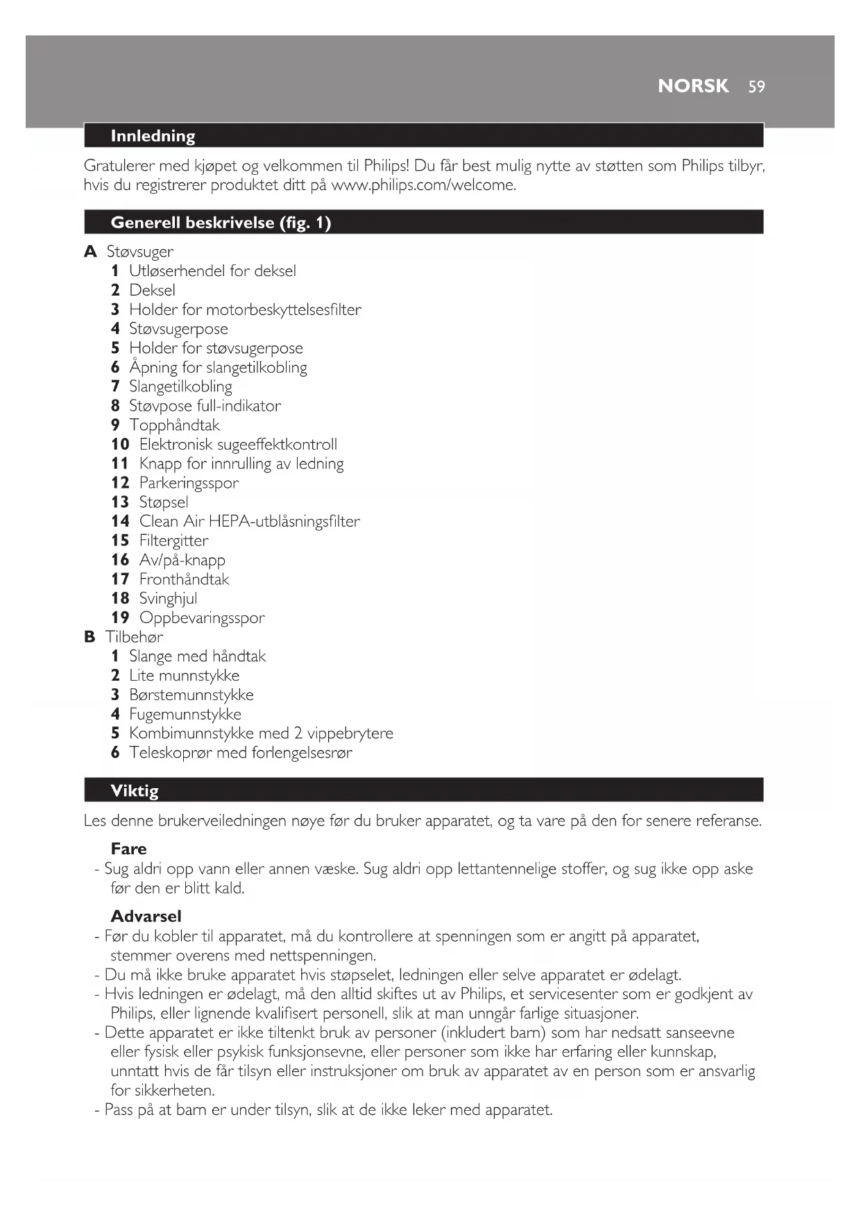 Les denne brukerveiledningen nøye før du bruker apparatet, og ta vare på den for senere referanse.