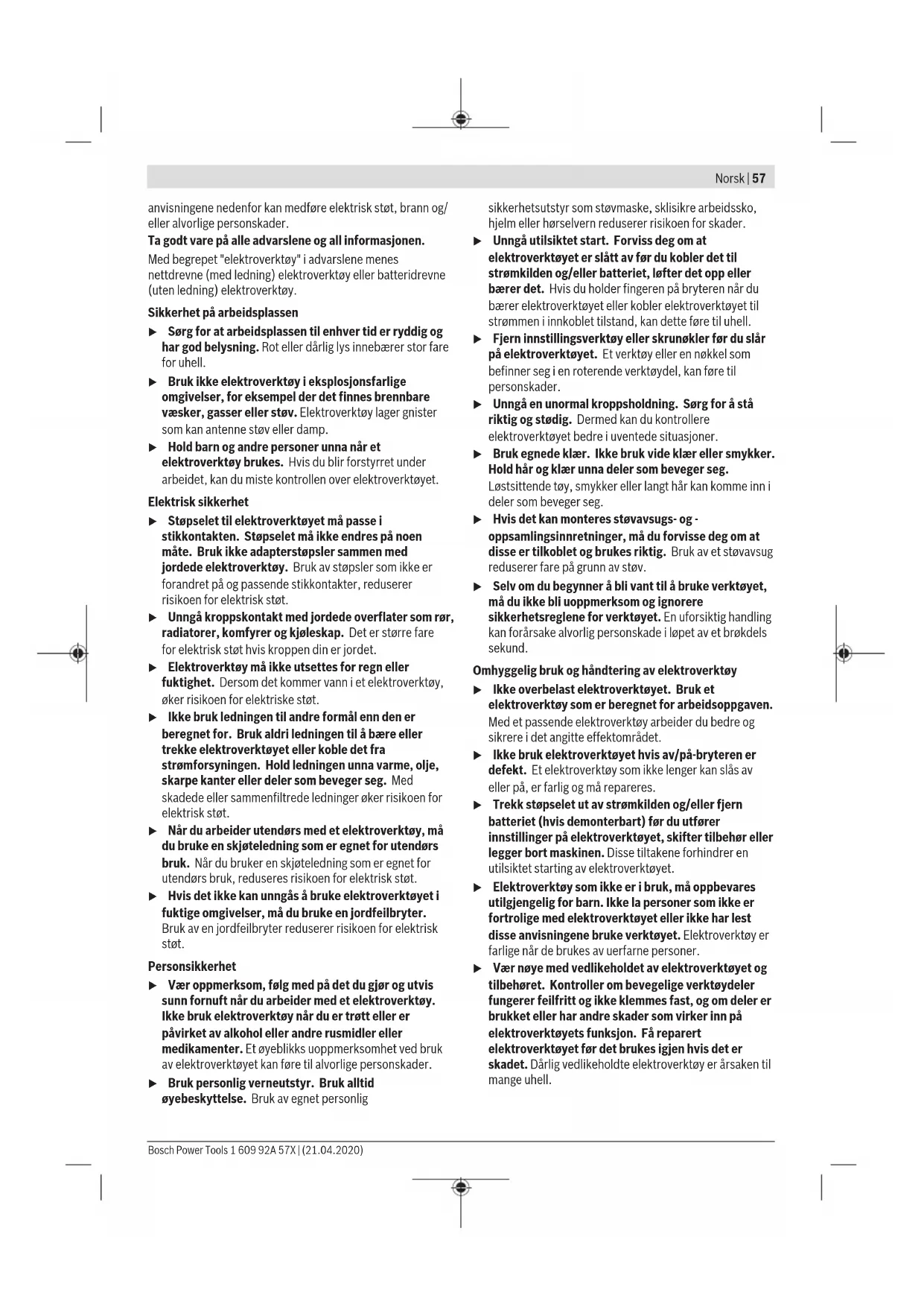 elektroverktøyet. Manglende overholdelse av 1 609 92A 57X | (21.04.2020) Bosch Power ToolsNorsk | 57