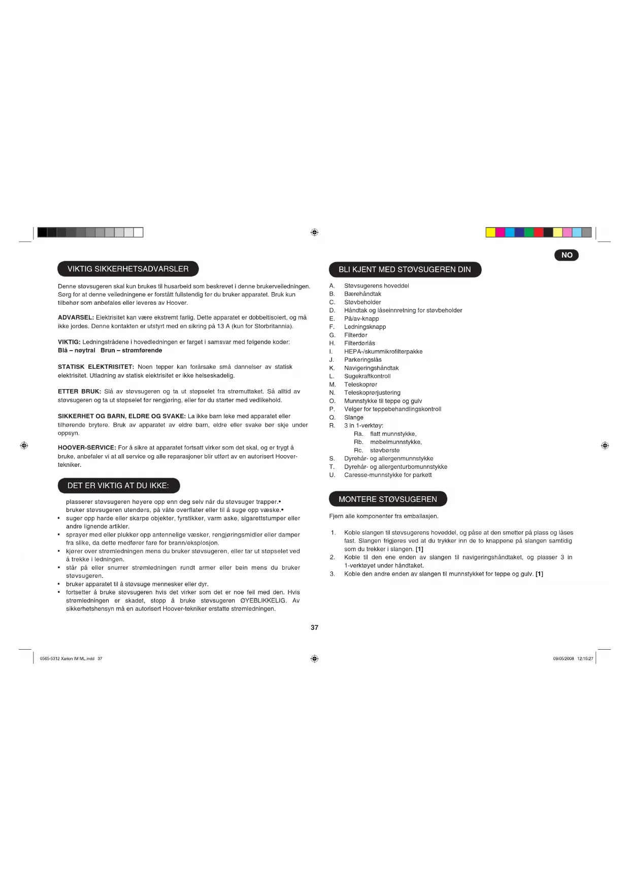 bruke, anbefaler vi at all service og alle reparasjoner blir utført av en autorisert Hoover-