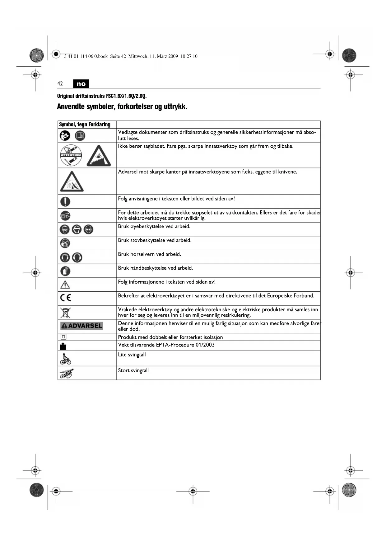 Ikke bruk dette elektroverktoyet for du har lest og forstatt denne driftsinstruksen og de vedlagte «Generelle sikkerhetsinformasjonene» (doku