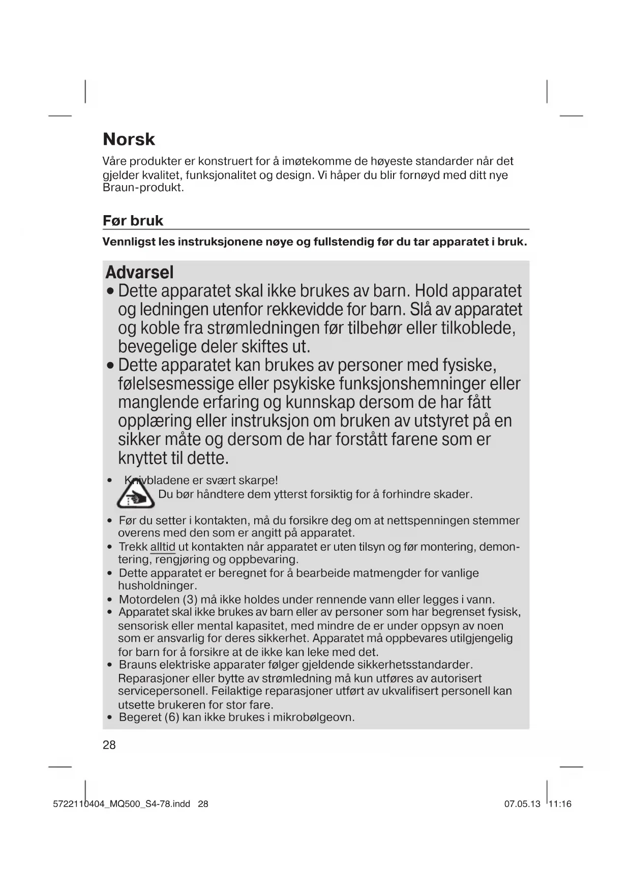 • Brauns elektriske apparater følger gjeldende sikkerhetsstandarder.