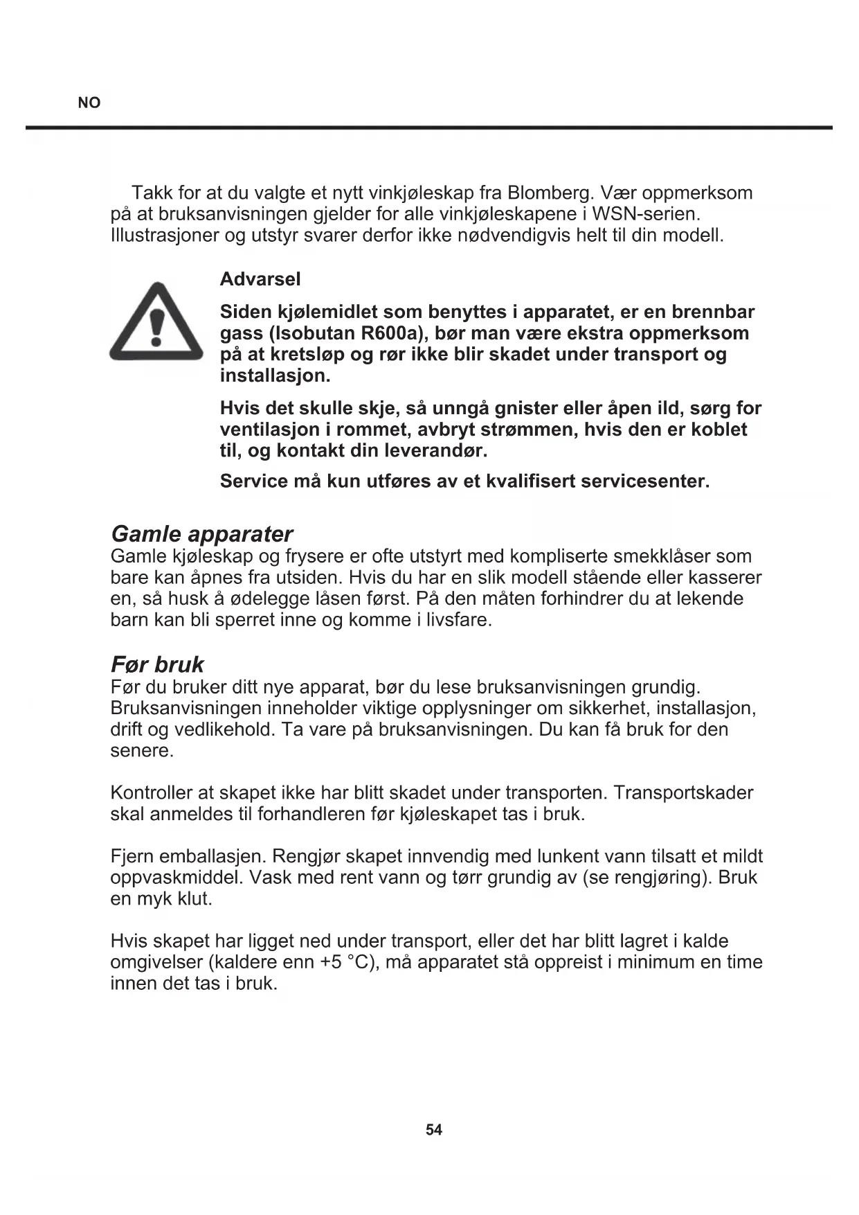 WSN 1412 LT - Kjøleskap BLOMBERG - Gratis bruksanvisning og manual