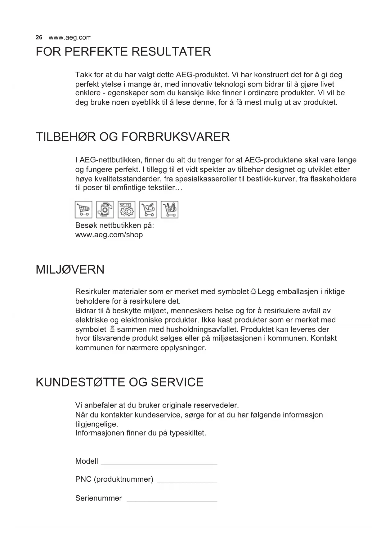 TILBEHØR OG FORBRUKSVARER I AEG-nettbutikken, nner du alt du trenger for at AEG-produktene skal vare lenge