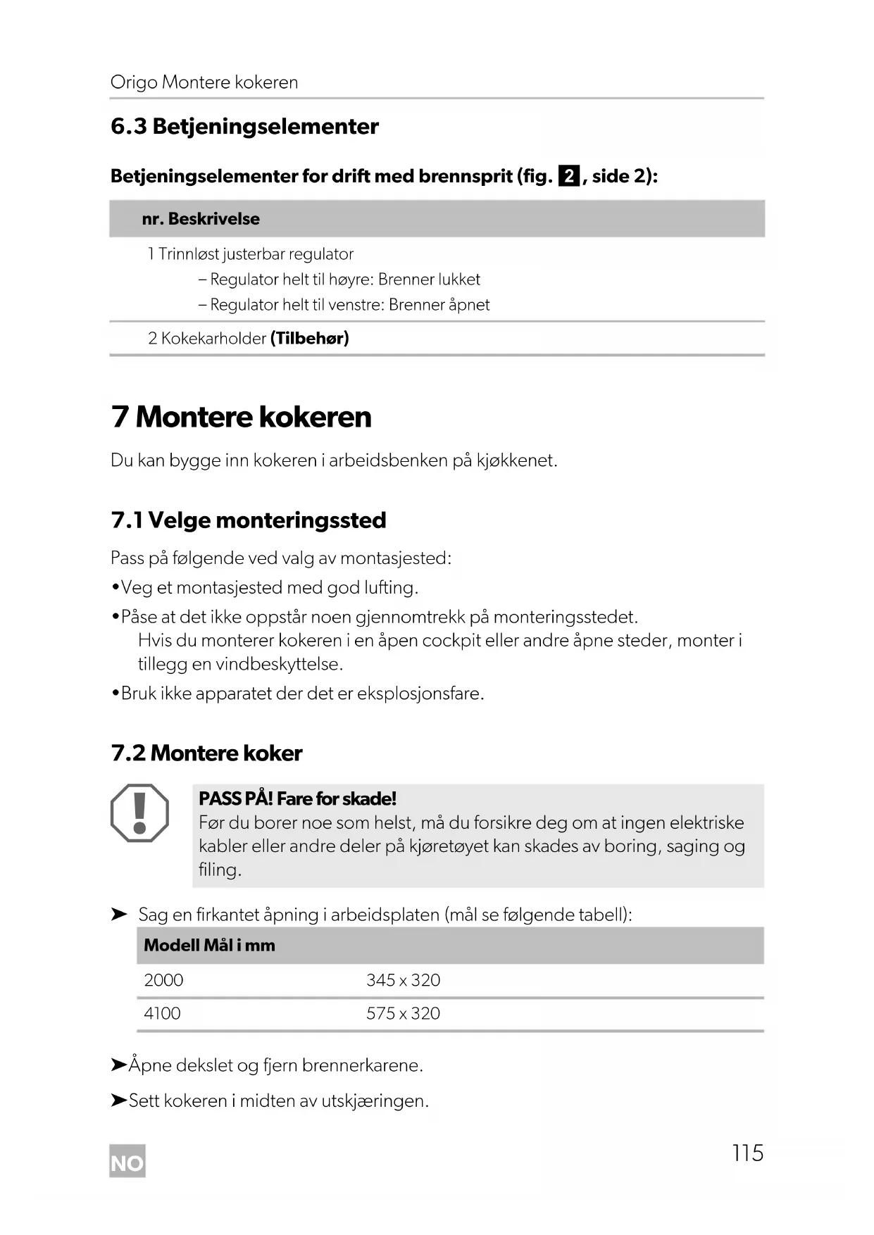 Origo 4100 - Komfyr DOMETIC - Gratis bruksanvisning og manual