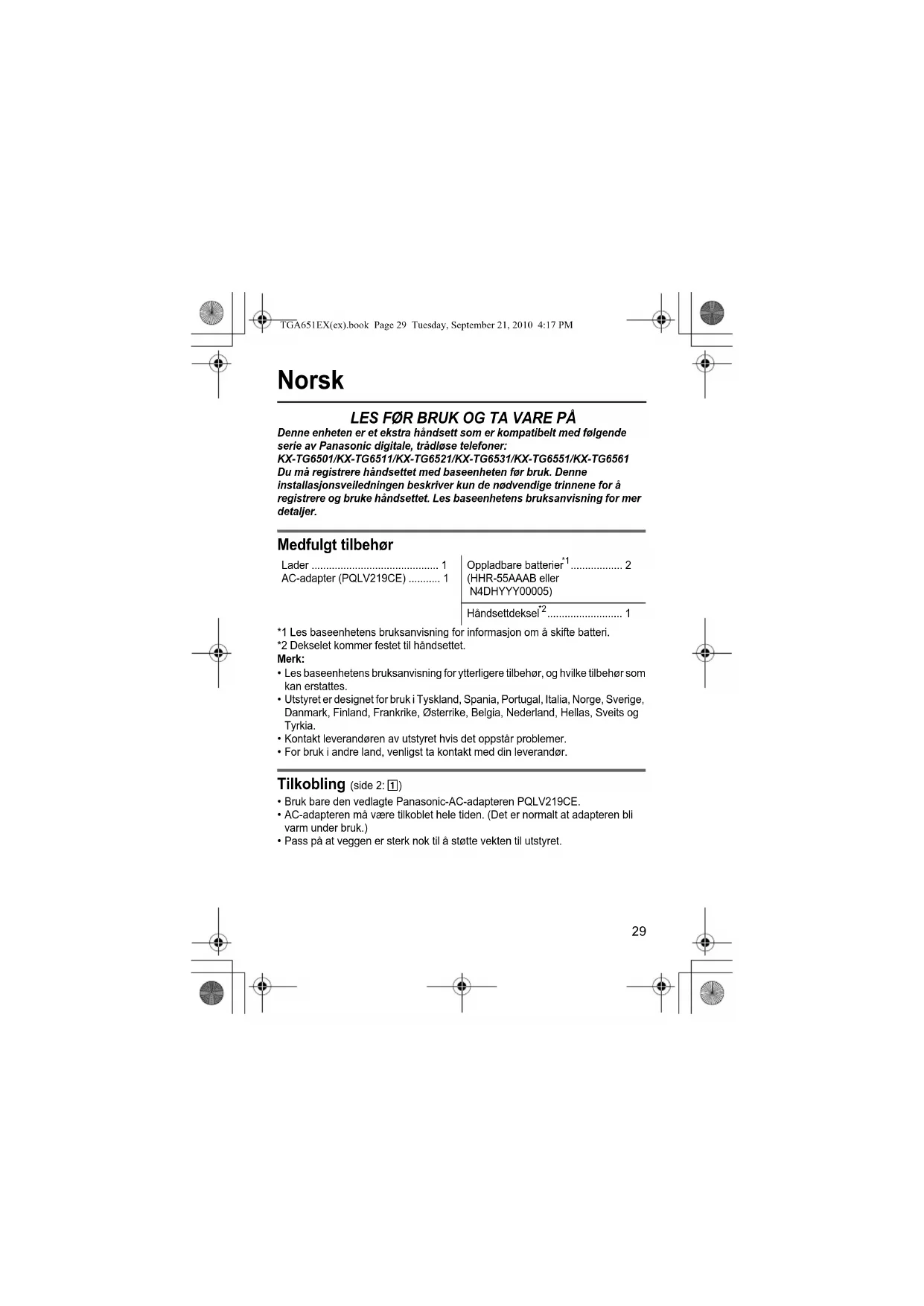 KX-TG6501/KX-TG6511/KX-TG6521/KX-TG6531/KX-TG6551/KX-TG6561