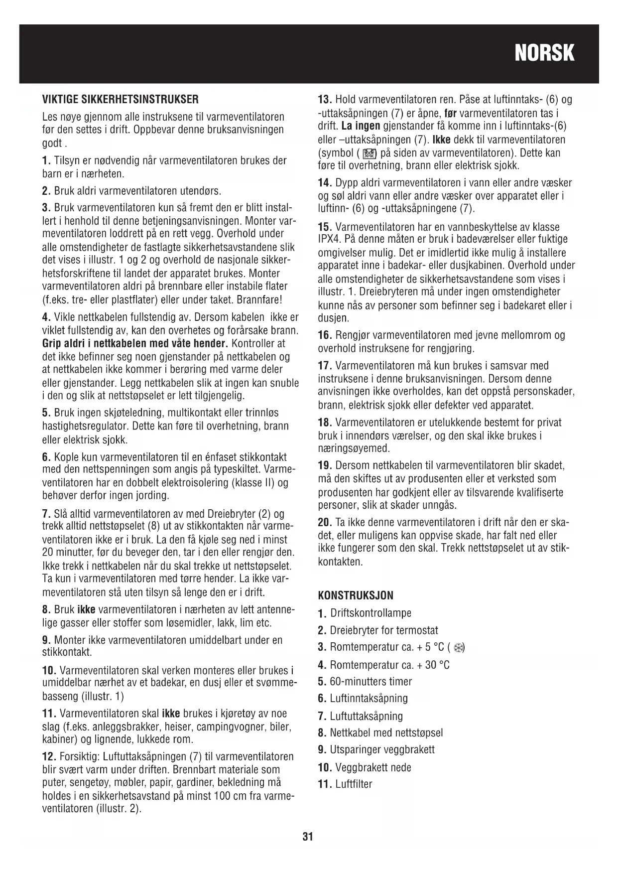 20. Ta ikke denne varmeventilatoren i drift når den er ska-