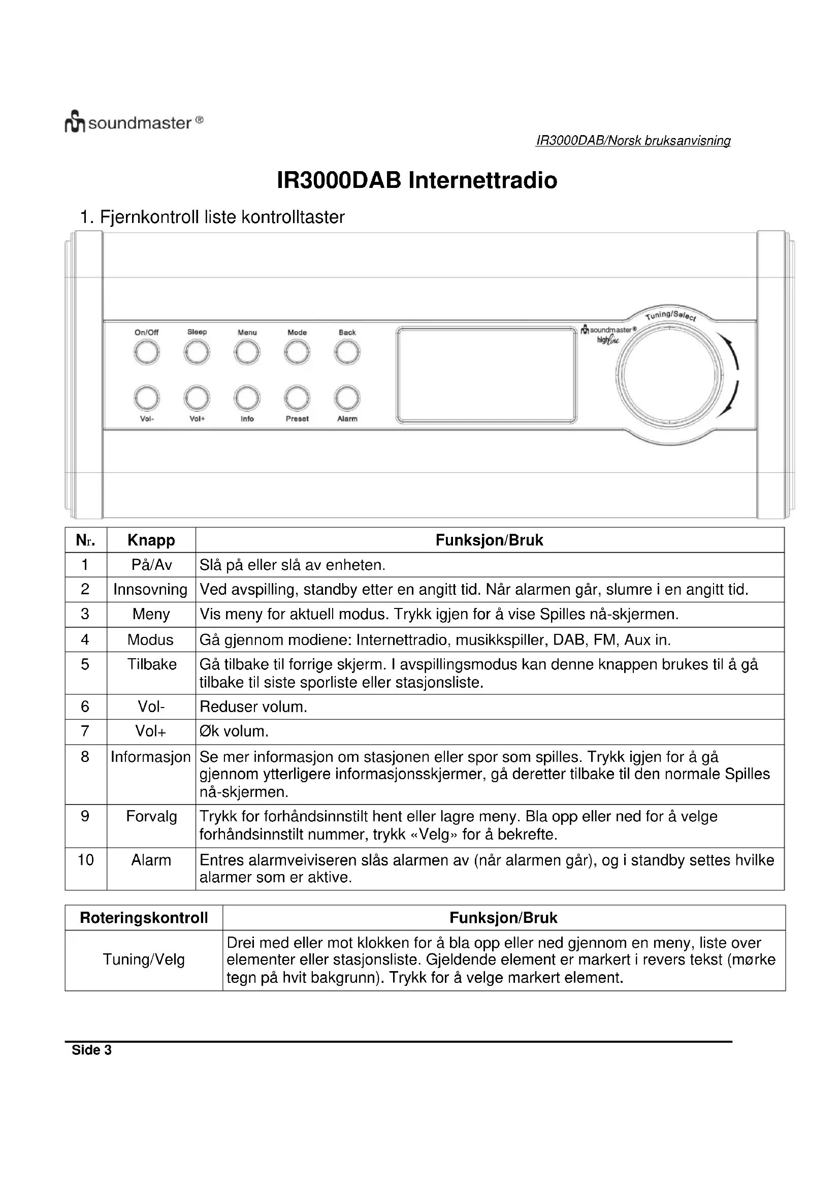 BRUKSANVISNING IR3000DAB Soundmaster