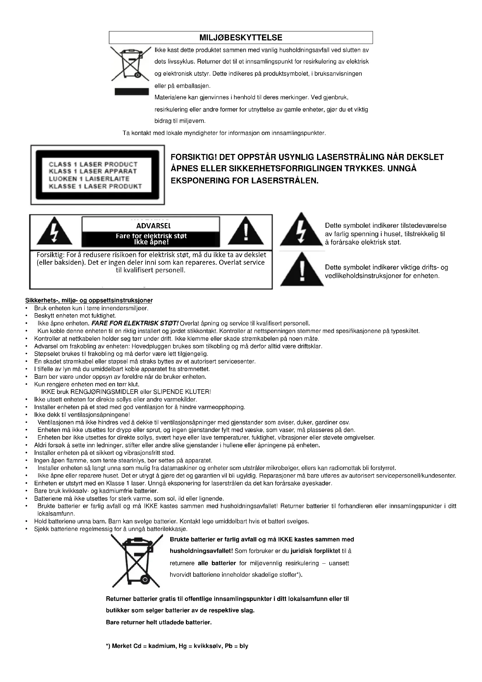 *) Merket Cd = kadmium, Hg = kvikksəlv, Pb = bly