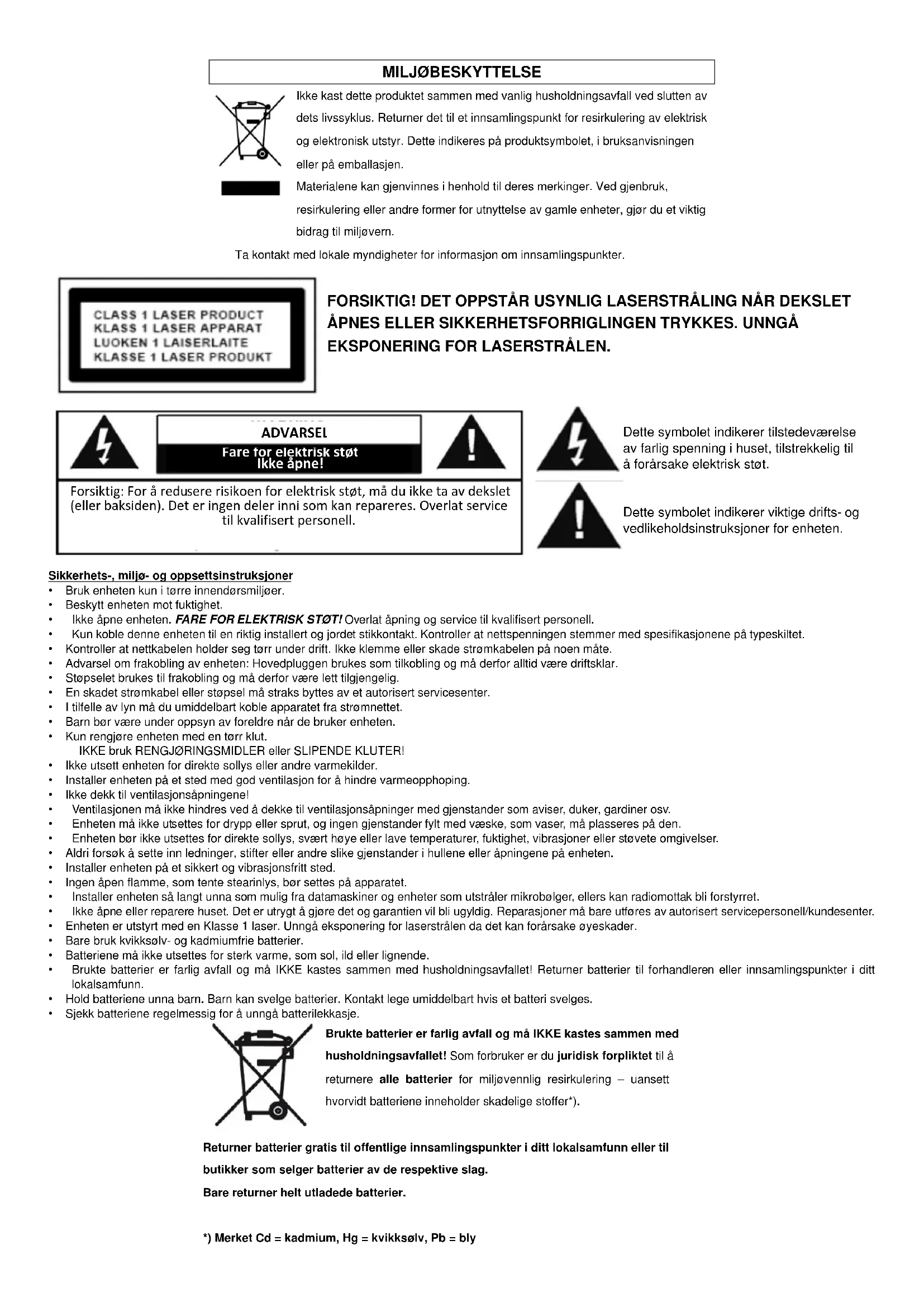 *) Merket Cd = kadmium, Hg = kvikksəlv, Pb = bly