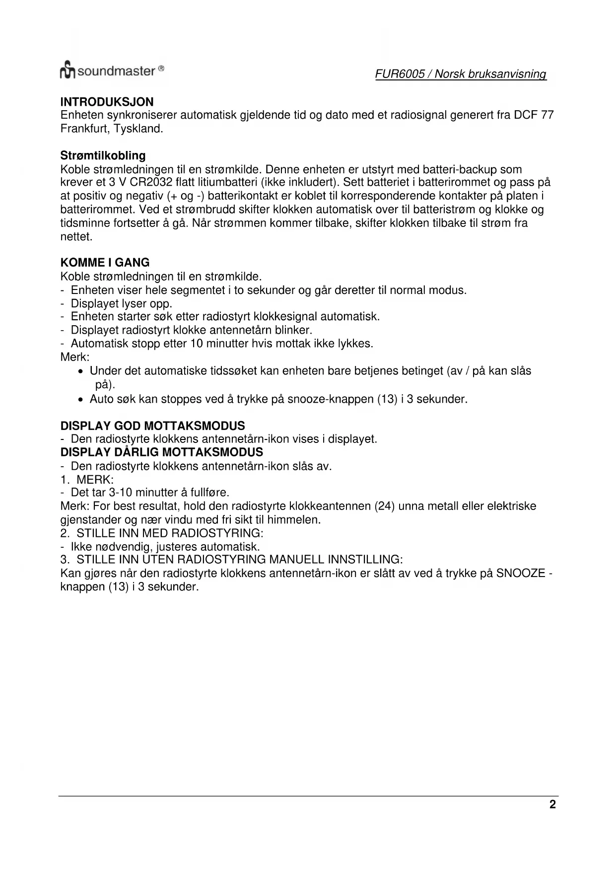 BRUKSANVISNING FUR6005 Soundmaster