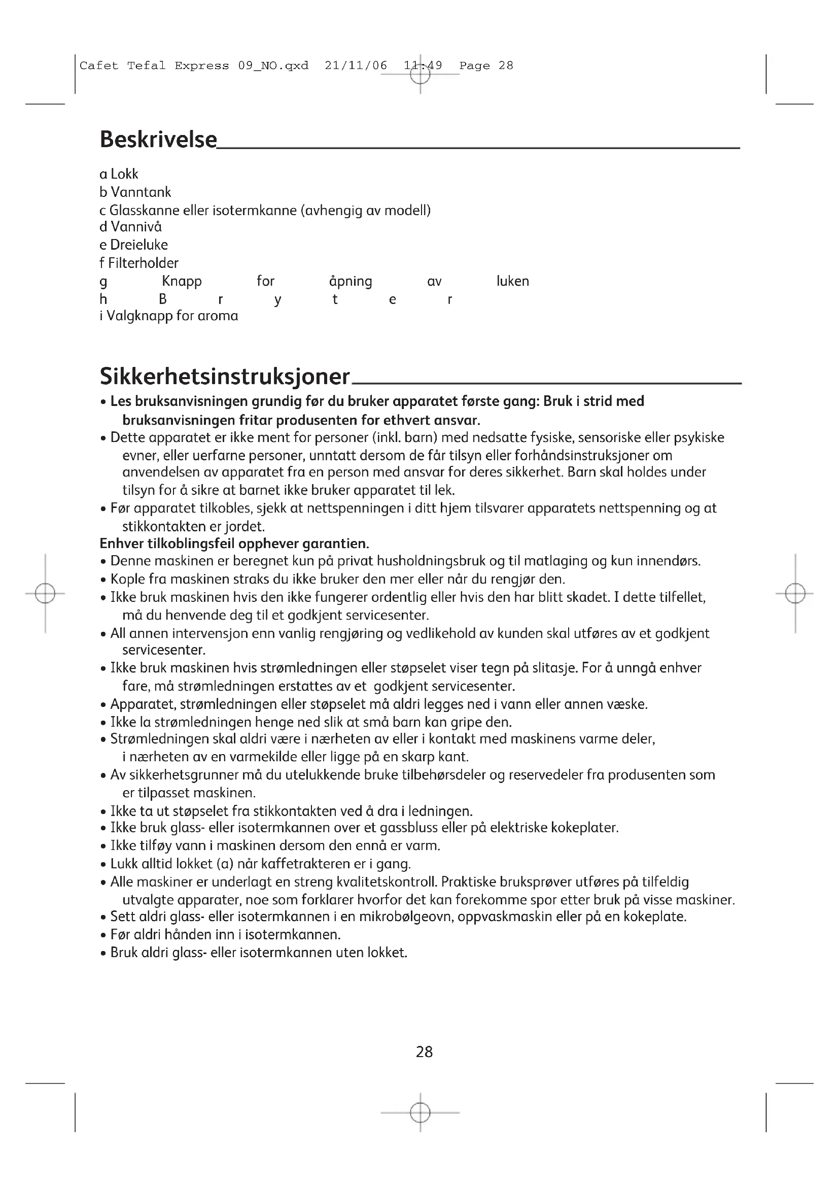 Cafet Tefal Express 09_NO.qxd 21/11/06 11:49 Page 28Før apparatet brukes første gang