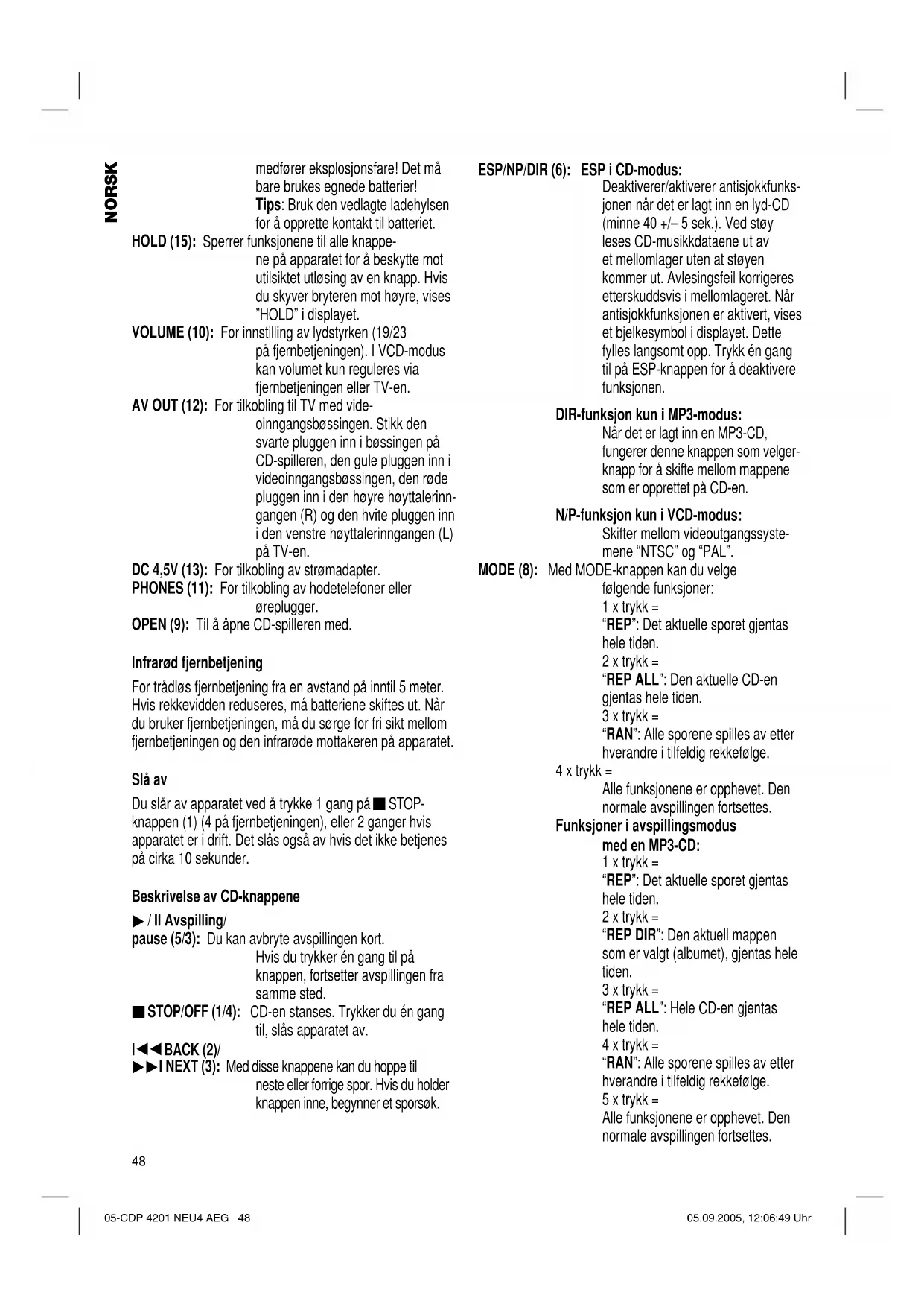 BRUKSANVISNING CDP 4201 MP3VCD AEG
