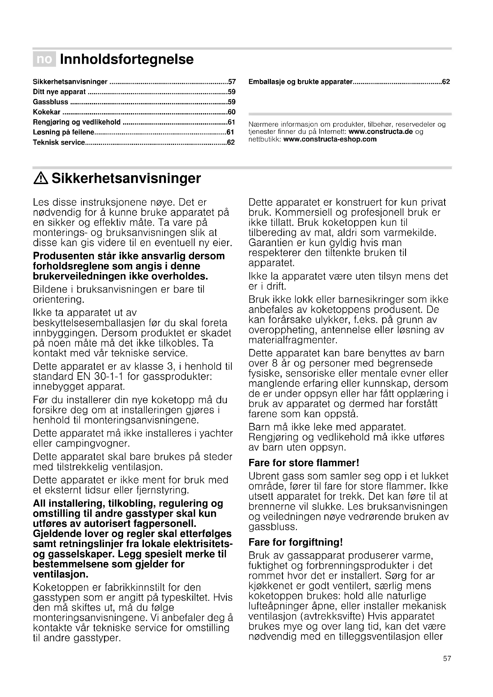 Dersom koketoppen slutter å fungere, må strøm og gasstilførsel kobles fra. Dersom produktet må repareres, skal du kontakte vår tekniske service. Fare for skader!