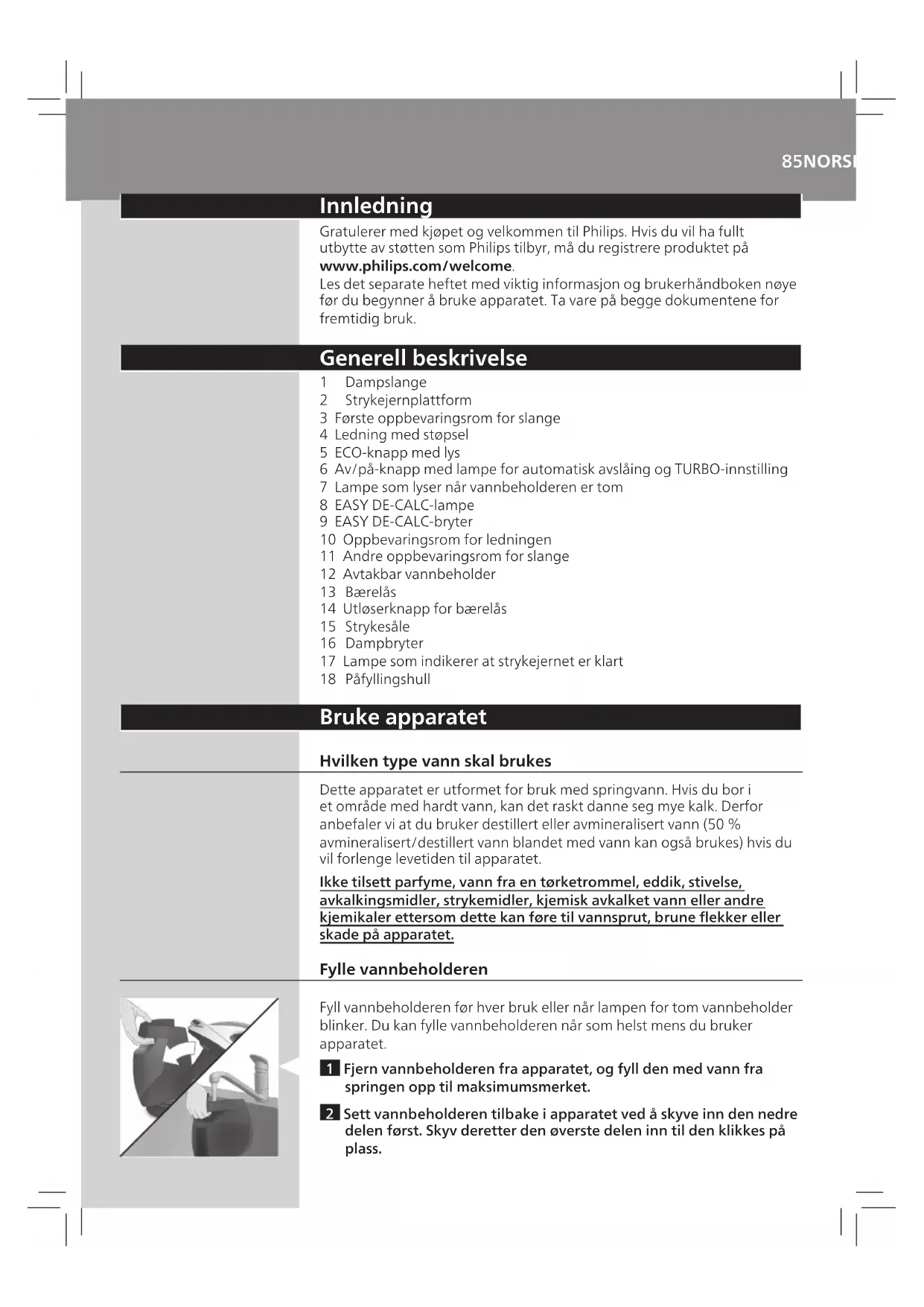 Last ned instruksjonene for din Strykejern i PDF-format gratis! Finn veiledningen din PerfectCare Elite GC9611 - PHILIPS og ta den elektroniske enheten tilbake i hendene. På denne siden er alle dokumenter som er nødvendige for bruken av enheten din publisert. PerfectCare Elite GC9611 av merket PHILIPS.