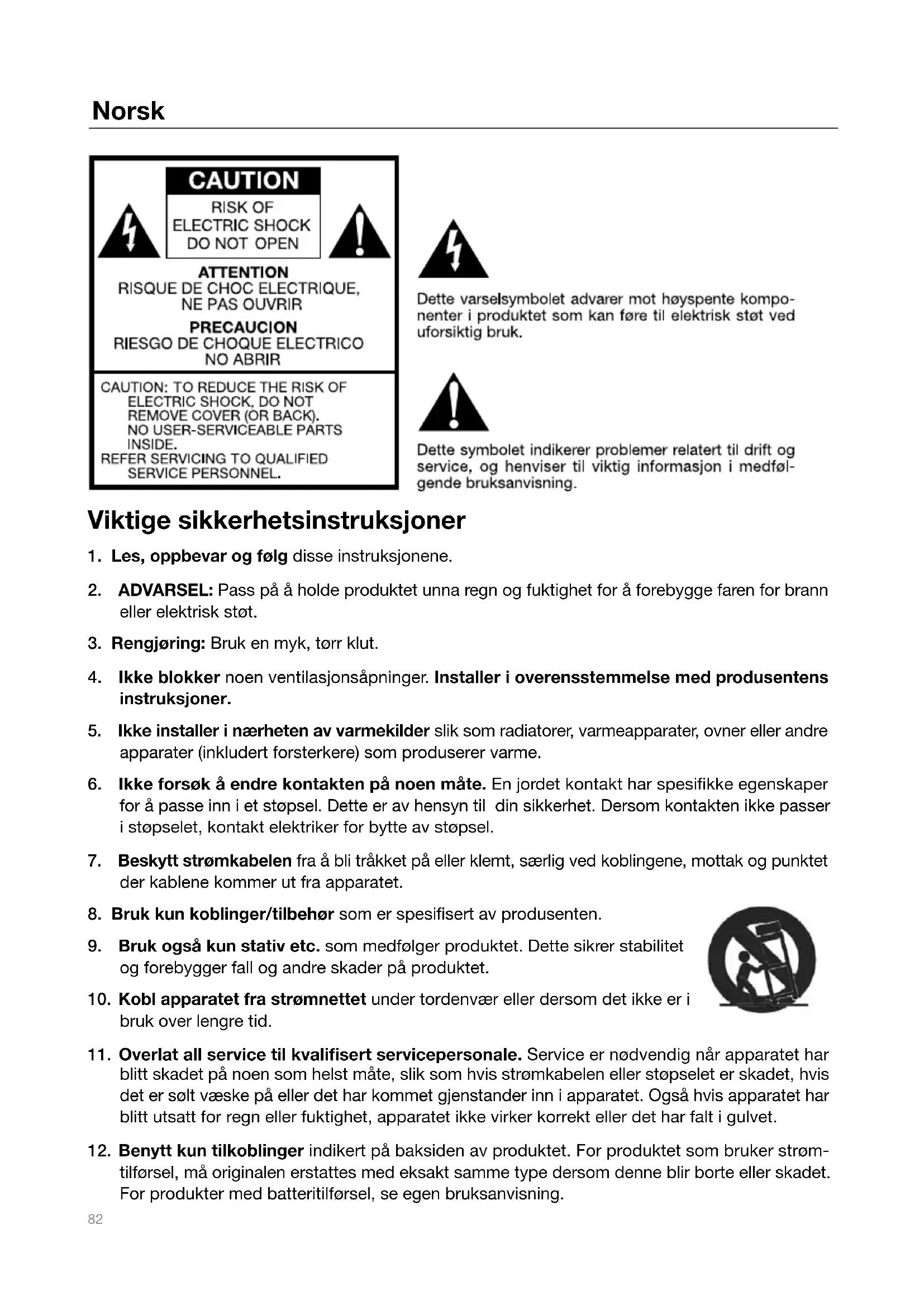 tilførsel, må originalen erstattes med eksakt samme type dersom denne blir borte eller skadet. For produkter med batteritilførsel, se egen bruksanvisning.83 Norsk