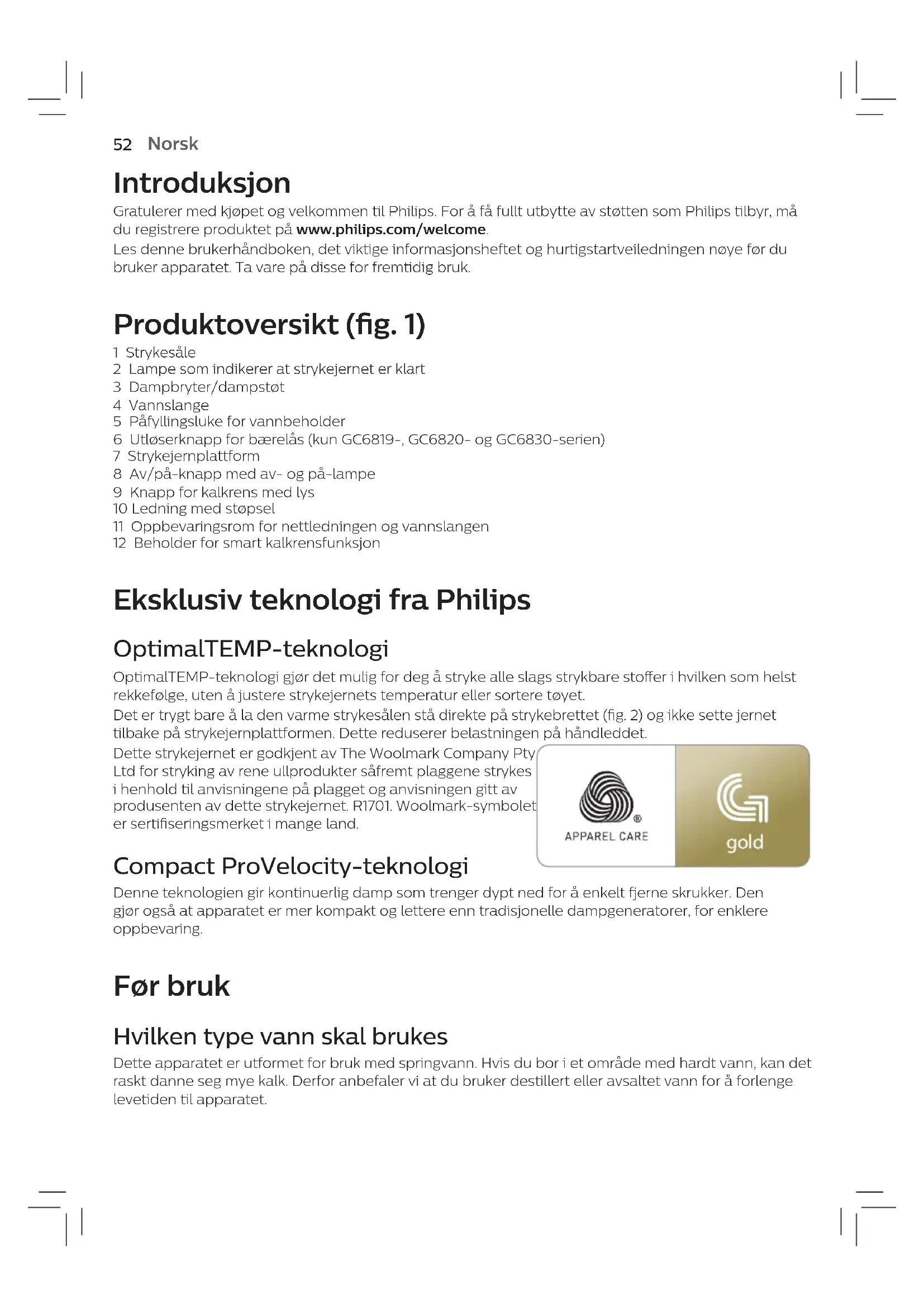 PerfectCare Compact Essential GC6822 - Strykejern PHILIPS - Gratis bruksanvisning og manual