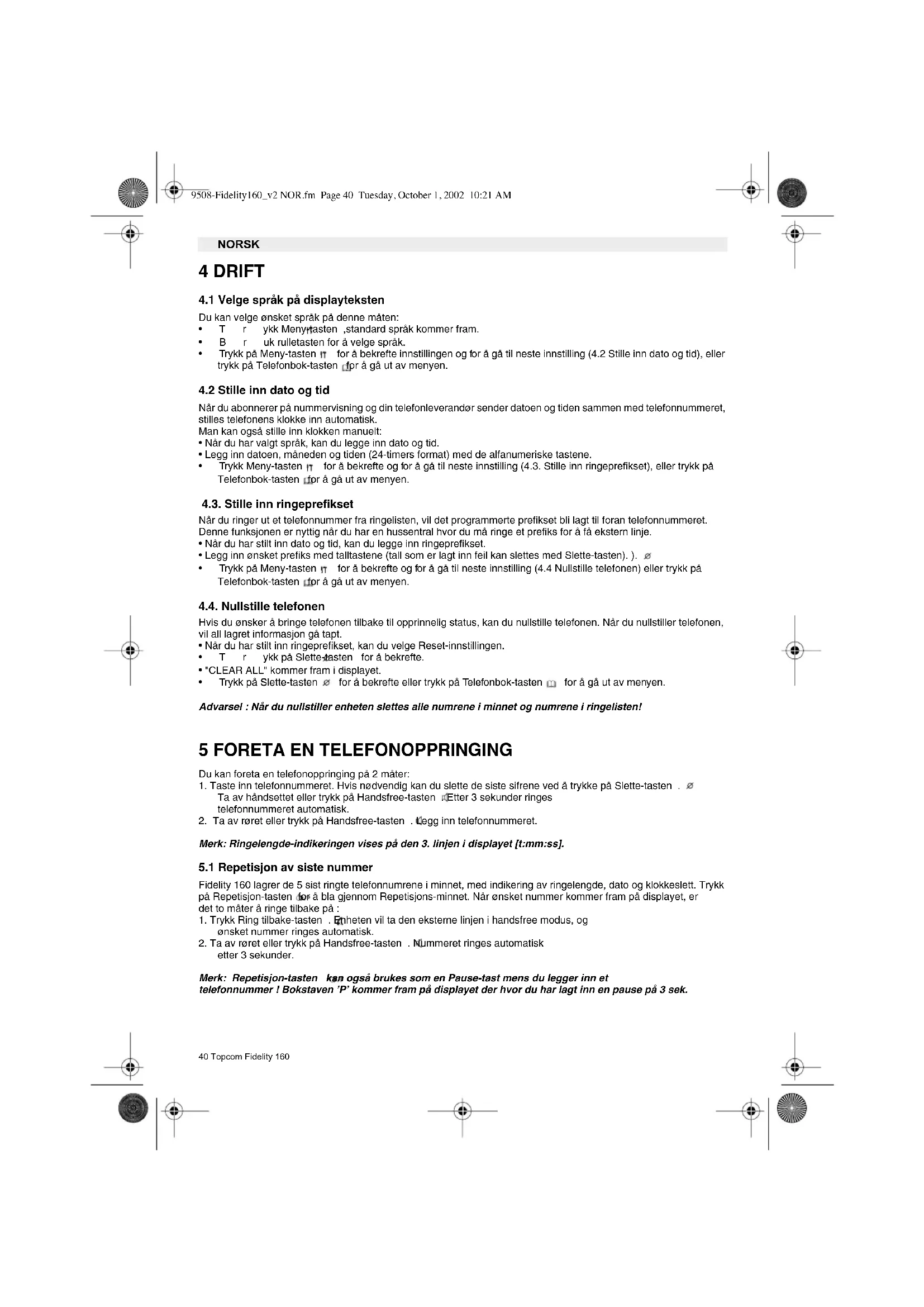 Fidelity 160 - Telefon TOPCOM - Gratis bruksanvisning og manual