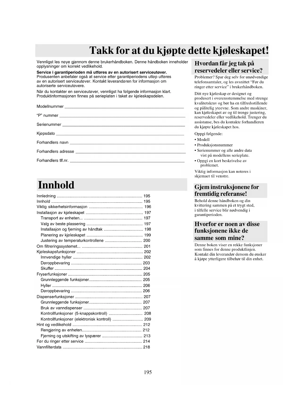 Takk for at du kjøpte dette kjøleskapet!