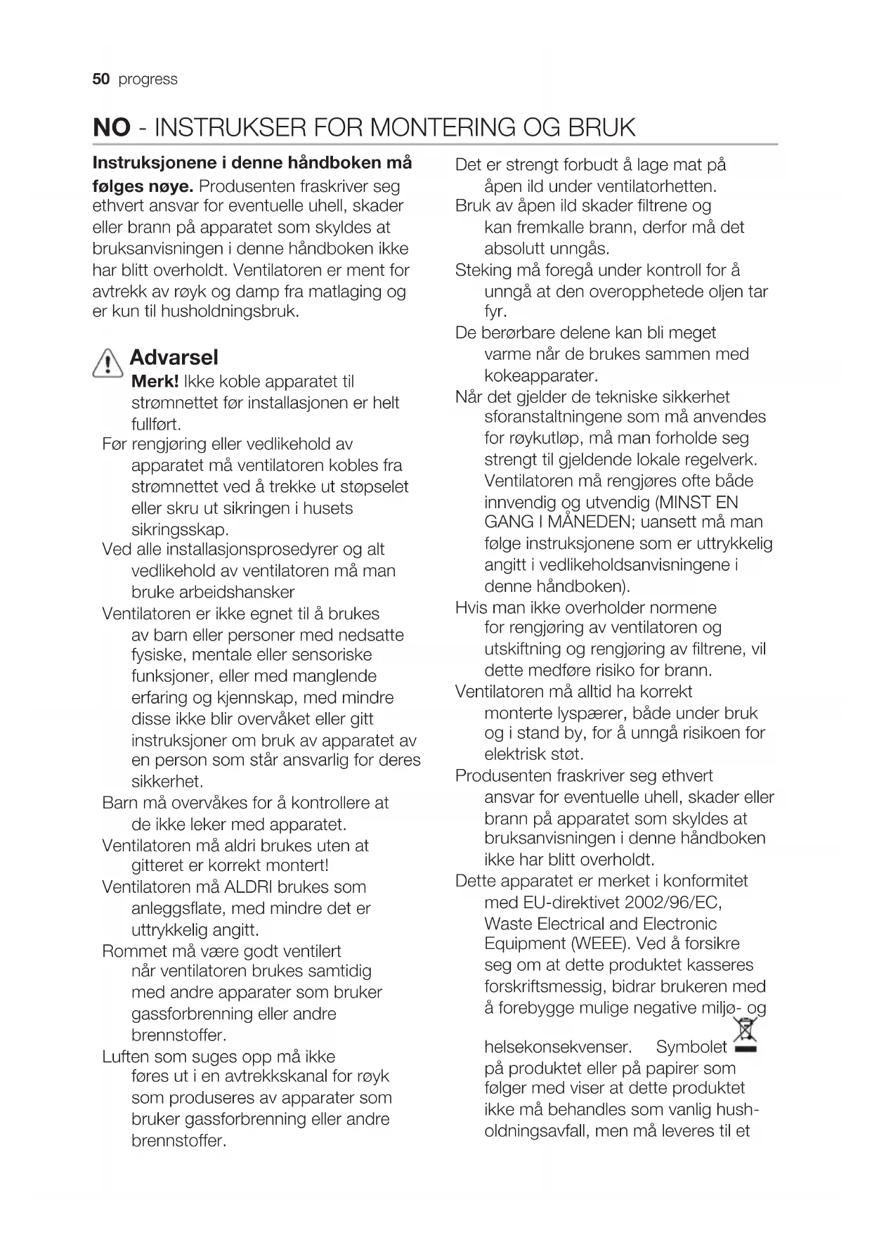PDB9020E - Kjøkkenvifte PROGRESS - Gratis bruksanvisning og manual